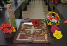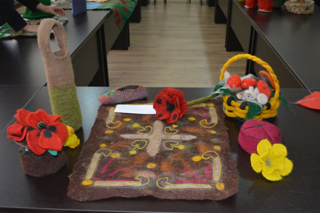 The course-graduates of the vocational educational program of Felt Craftsman – III stage presented their diploma handicrafts at the exposition. Duration of studies on vocational educational program of Felt Craftsman at Tesau faculty of Educational Sciences is 9 months. The graduates were awarded with the qualification of Felt Craftsman III stage.
