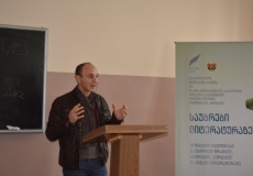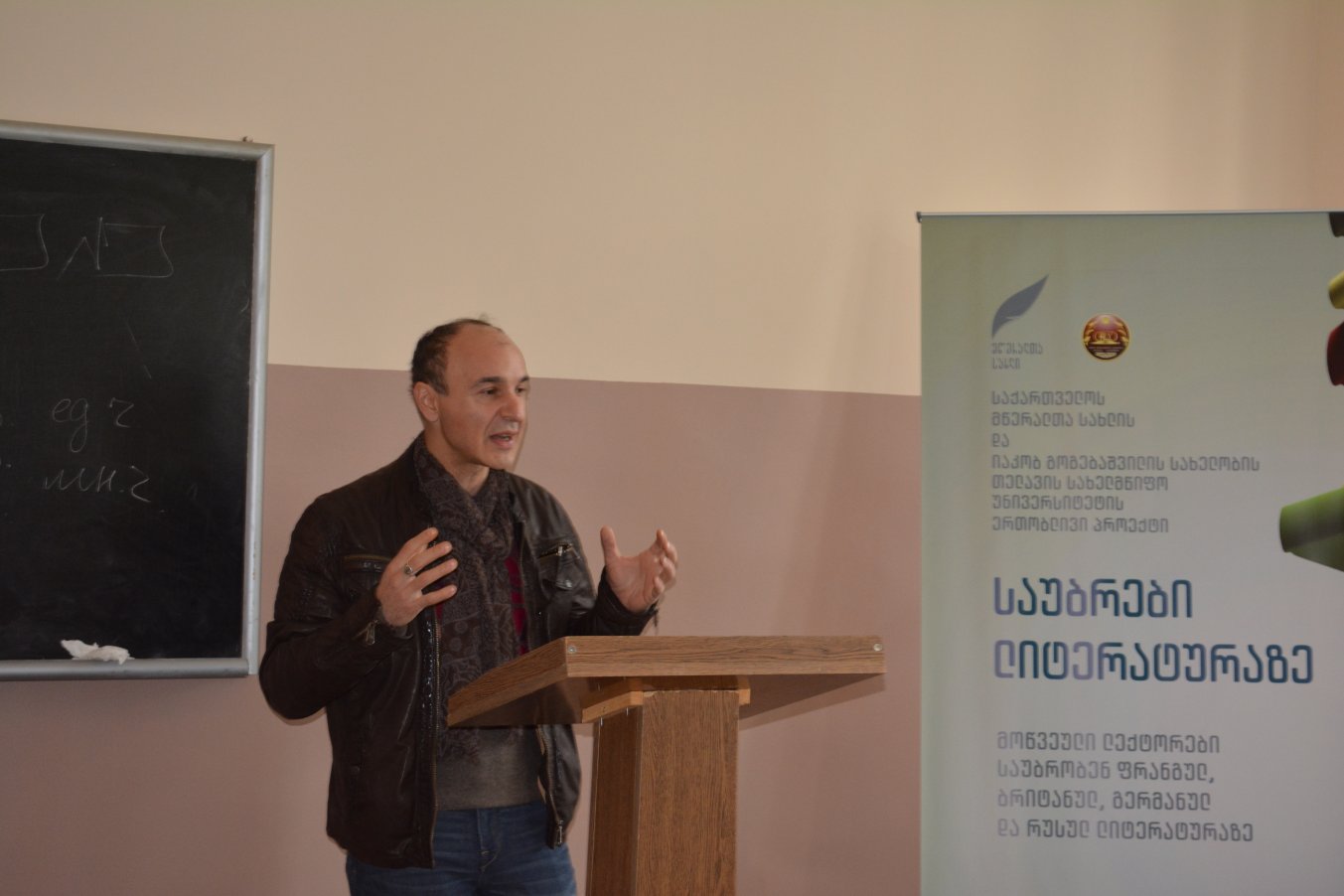 Under the joint project of the Writers’ House and Iakob Gogebashvili Telavi State University “Conversations on Literature”, Ilia State University Professor, Giorgi Maisuradze conducted the next public lecture at Tesau on March 25.