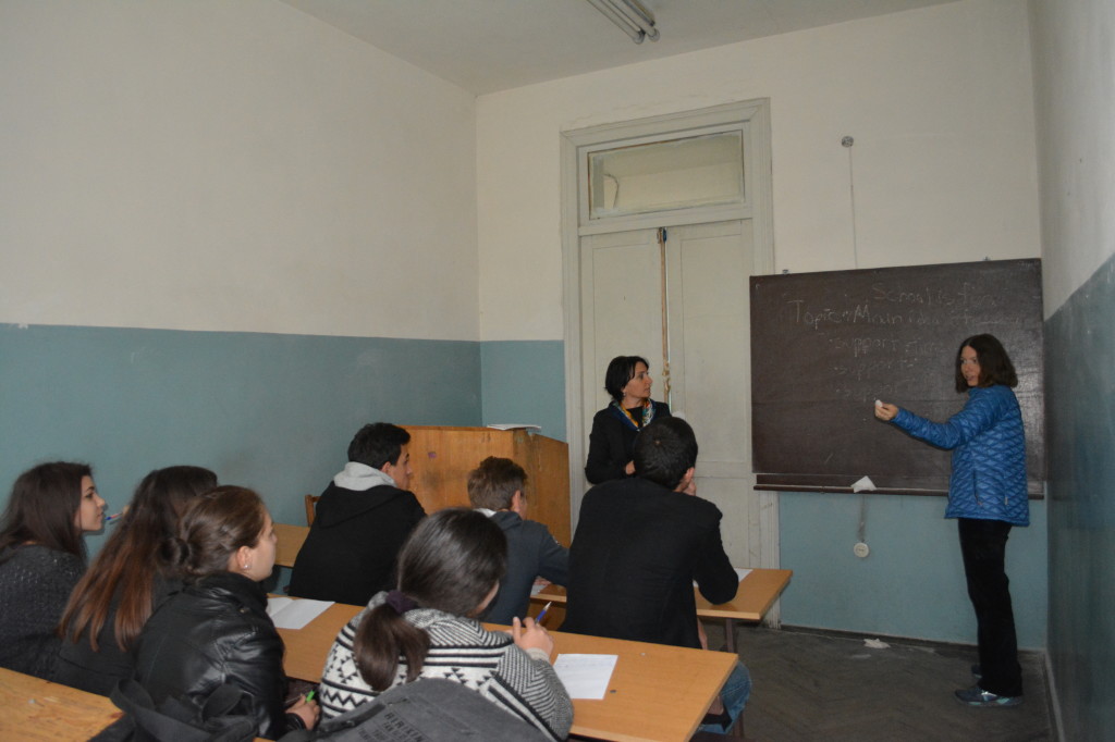 On 12th of October Iakob Gogebashvili Telavi State University assistant of the Department of Foreign Languages and Literature – Ia Kevlishvili and Fulbright program participant – Sarah Gallagher met with 12th graders in Telavi Municipality public schools. After interviewing, the groups have been compiled.