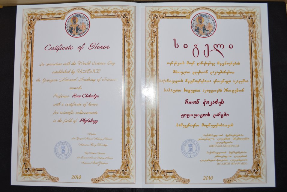 Iakob Gogebashvili Telavi State University Professor, linguist Roin Chikadze was awarded the Certificate of Honor by Georgian National Academy of Sciences.