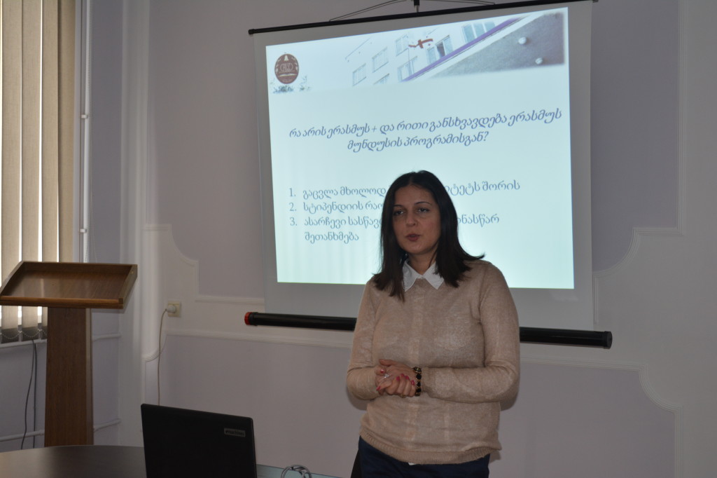 On November 25th, Iakob Gogebashvili Telavi State University International Relations Office arranged an informational meeting regarding the contest announced under ERASMUS+ programme for Tesau students.Â