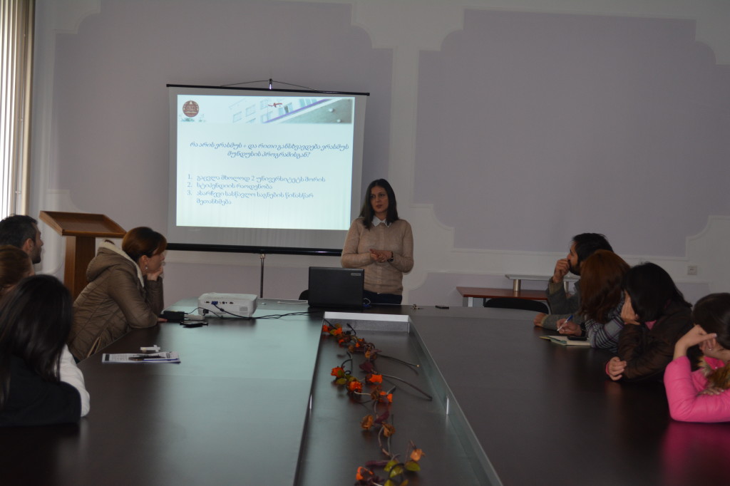 The head of the mentioned Office, Tamar Aslanishvili spoke about exchange programmes for Bachelor and PhD students. She gave detailed information about the subjects to be chosen, necessary documents, testing and interviewing processes.