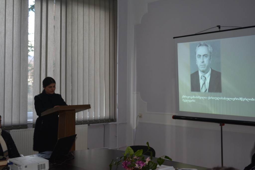 Dean of the faculty of Humanities, Professor Nino Kochloshvili and head of the Department of Georgian Philology, Associate Professor Nino Giorgadze delivered introductory speech for students and professor-teachers. During the seminar, IV course student with the specialty of Georgian Language and Literature, Ketevan Dogonadze presented her report – “Enriko Gabidzashvili and Ancient Sacred Writings” (supervisor – Associate Professor, Nino Giorgadze). In addition, Tamar Tatulishvili, II course student of the same specialty read her report – “Akaki Shanidze – the Leading Figure of Georgian Language” (supervisor – Professor Nunu Geldiashvili).