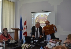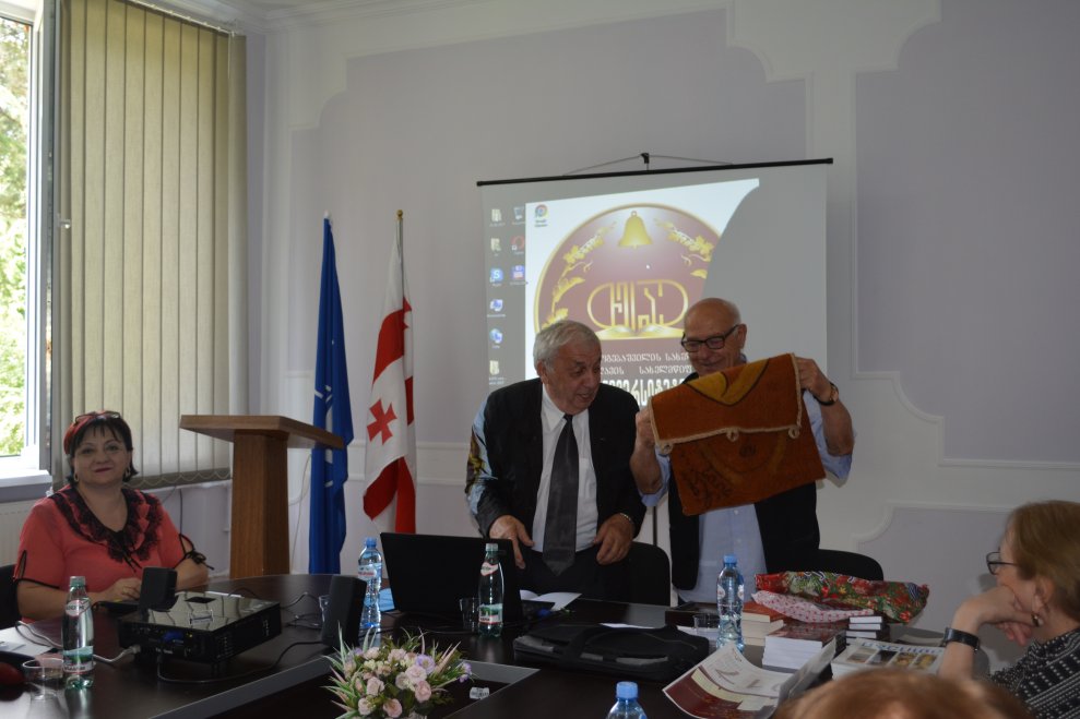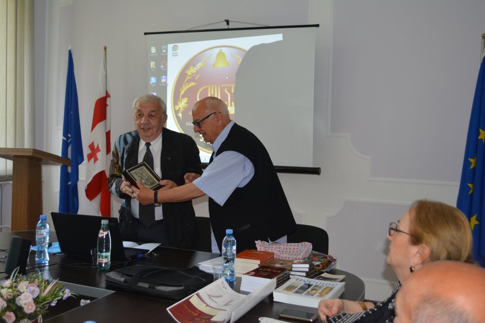 TeSaU Professor, Roin Chikadze gave memorable gifts to guests, and the Institute of Literature gifted Galaktion Tabidze’s five-volume series to Telavi State University.