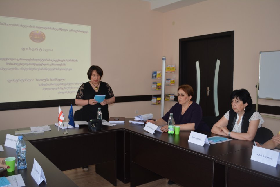 On June 23, dissertation defense of Khatuna Kharkheli took place at Iakob Gogebashvili Telavi State University faculty of Education Sciences. The title of the dissertation was “The Role of Formal and Informal Letters in Development of Writing Culture (While Teaching General English at Higher Education Institutions)”. Scientific supervisor: Associate Professor Ira Danelia.