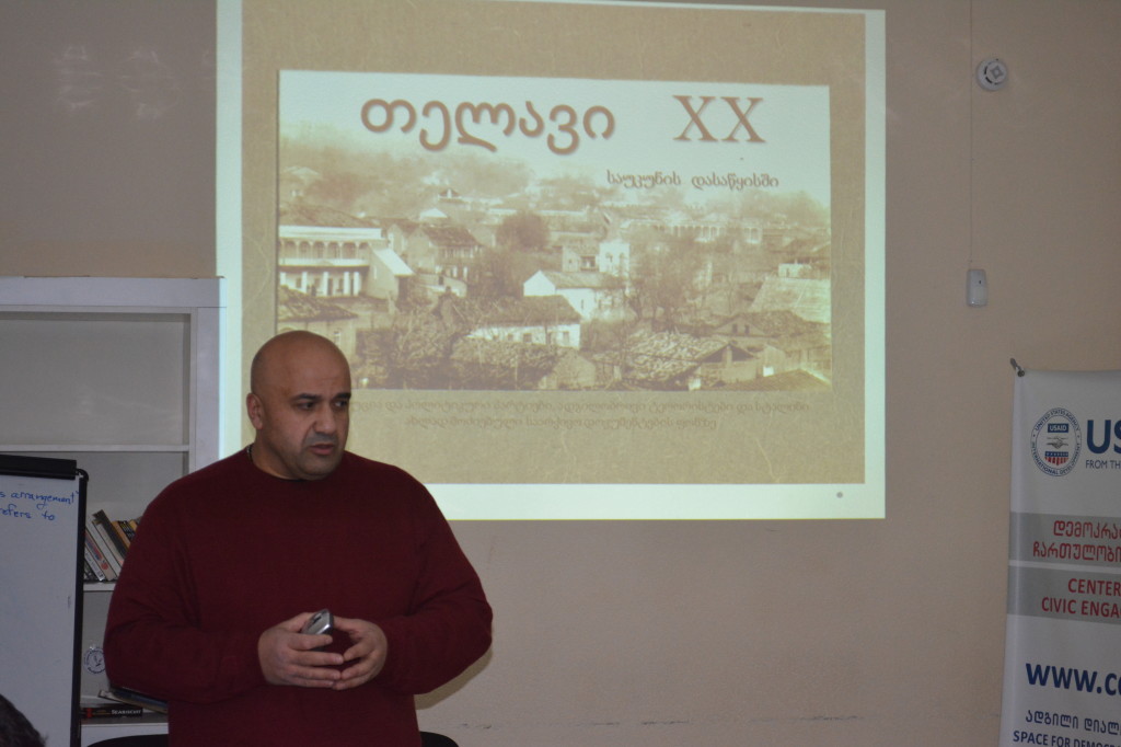 Professor introduced the archival materials depicting Telavi historical facts, buildings, Telavi City structure, lifestyle of Telavi inhabitants, agriculture and other important items to the audience, Tesau professor-teachers and students gathered in “Telavi Center for Civic Engagement”. The photo-gallery contains the episodes from low, middle and high layers’ life, as well as activities of different political parties.