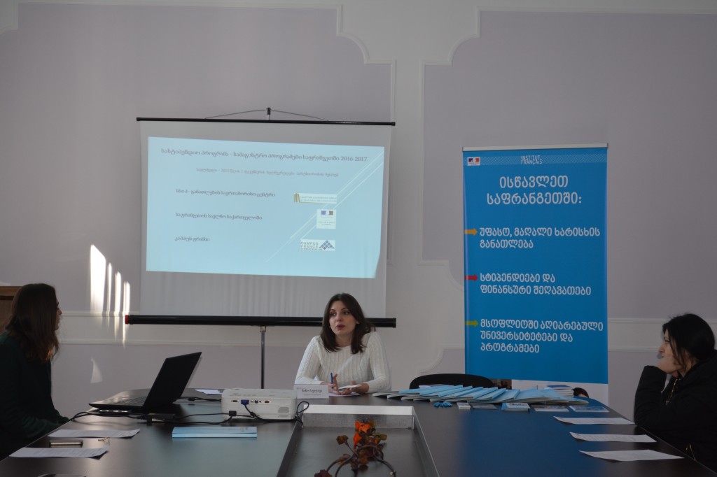აღნიშნული პროგრამის პრეზენტაცია იაკობ გოგებაშვილის სახელობის თელავის სახელმწიფო უნივერსიტეტში 28 იანვარს ,,განათლების საერთაშორისო ცენტრის“ და საქართველოს ფრანგული ინსტიტუტის წარმომადგენლებმა გამართეს.