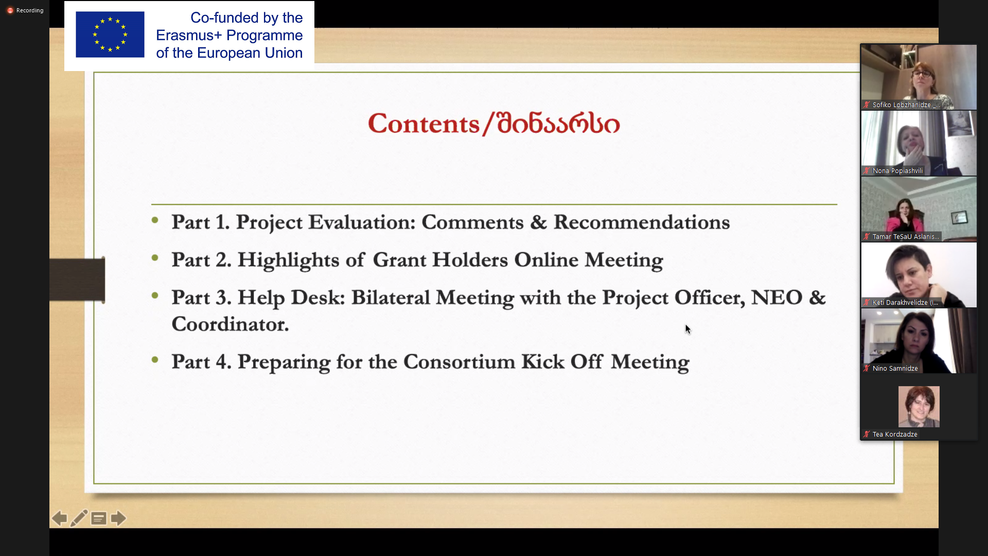 The regional project coordinator, TSU Professor Izabela Petriashvili, Samtskhe-Javakheti State University Professor Tina Gelashvili and Ilia State University project financial manager Manana Salukvadze introduced partners the general overview of the project. The meeting participants were familiarized with the recommendations given by the project evaluators. They also made a discussion regarding the ways for the successful implementation of the project. The partners reviewed the activities to be done under the project in detail.