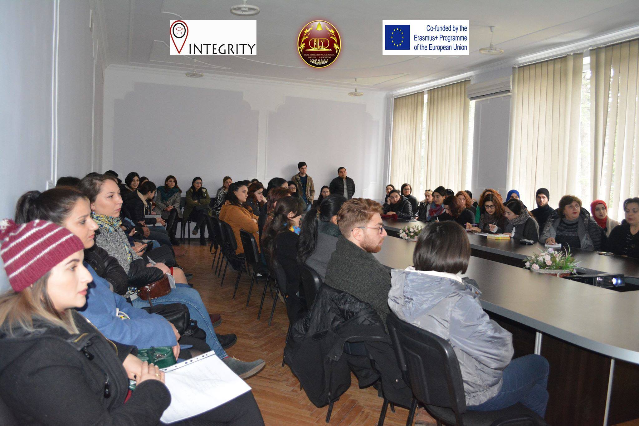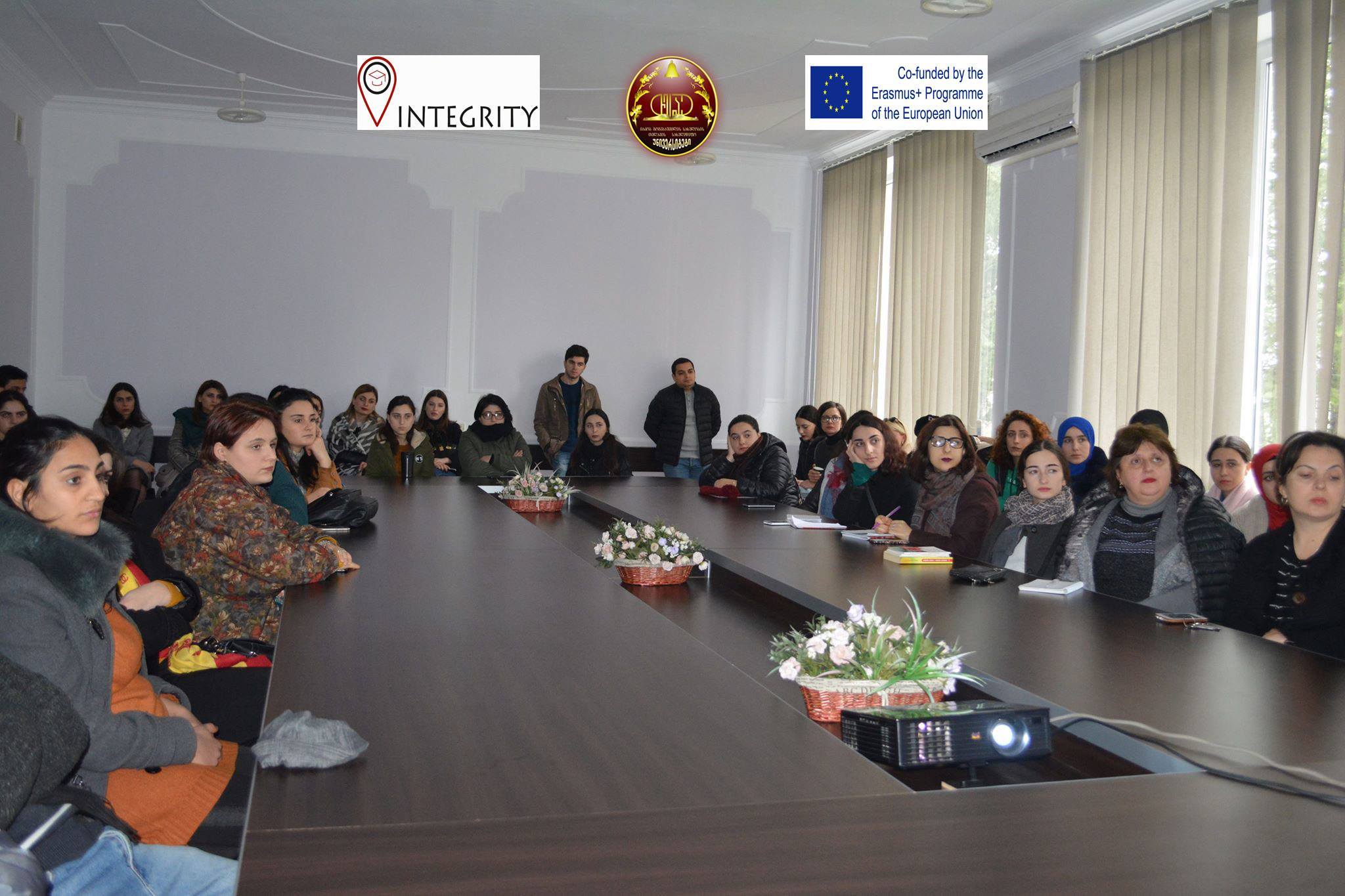 25-26 დეკემბერს, პროექტ „INTEGRITY“-ის ფარგლებში, იაკობ გოგებაშვილის სახელობის თელავის სახელმწიფო უნივერსიტეტის  ჰუმნიტარულ და ზუსტ და საბუნებისმეტყველო  მეცნიერებათა ფაკულტეტის სტუდენტებთან   საინფორმაციო შეხვედრა გაიმართა.