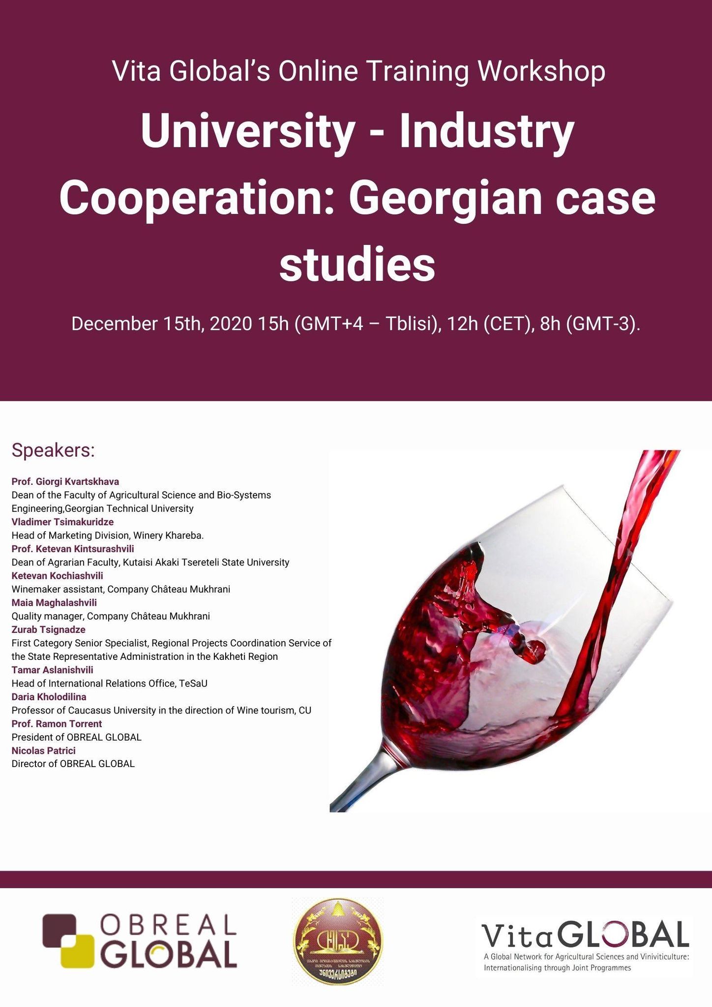 15 დეკემბერს,  პროგრამა Erasmus+ -ის პროექტი VitaGLOBAL -ის ფარგლებში, გაიმართა ვორქშოპი „უნივერსიტეტი-საწარმოს თანამშრომლობა: საქართველოს ქეისების განხილვა“ ("University - Industry Cooperation: Georgian Case Studies").