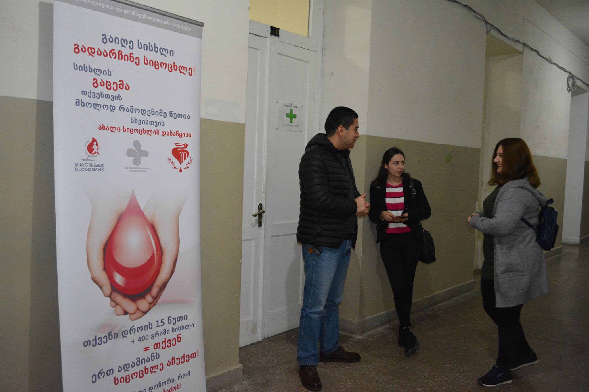 ჰემატოლოგიის ინსტიტუტის სისხლის ბანკის წარმომადგენლებმა 12 ნოემბერს, იაკობ გოგებაშვილის სახელობის თელავის სახელმწიფო უნივერსიტეტში, საქველმოქმედო აქცია -,,გაიღე სისხლი, გადაარჩინე სიცოცხლე,“- გამართეს.