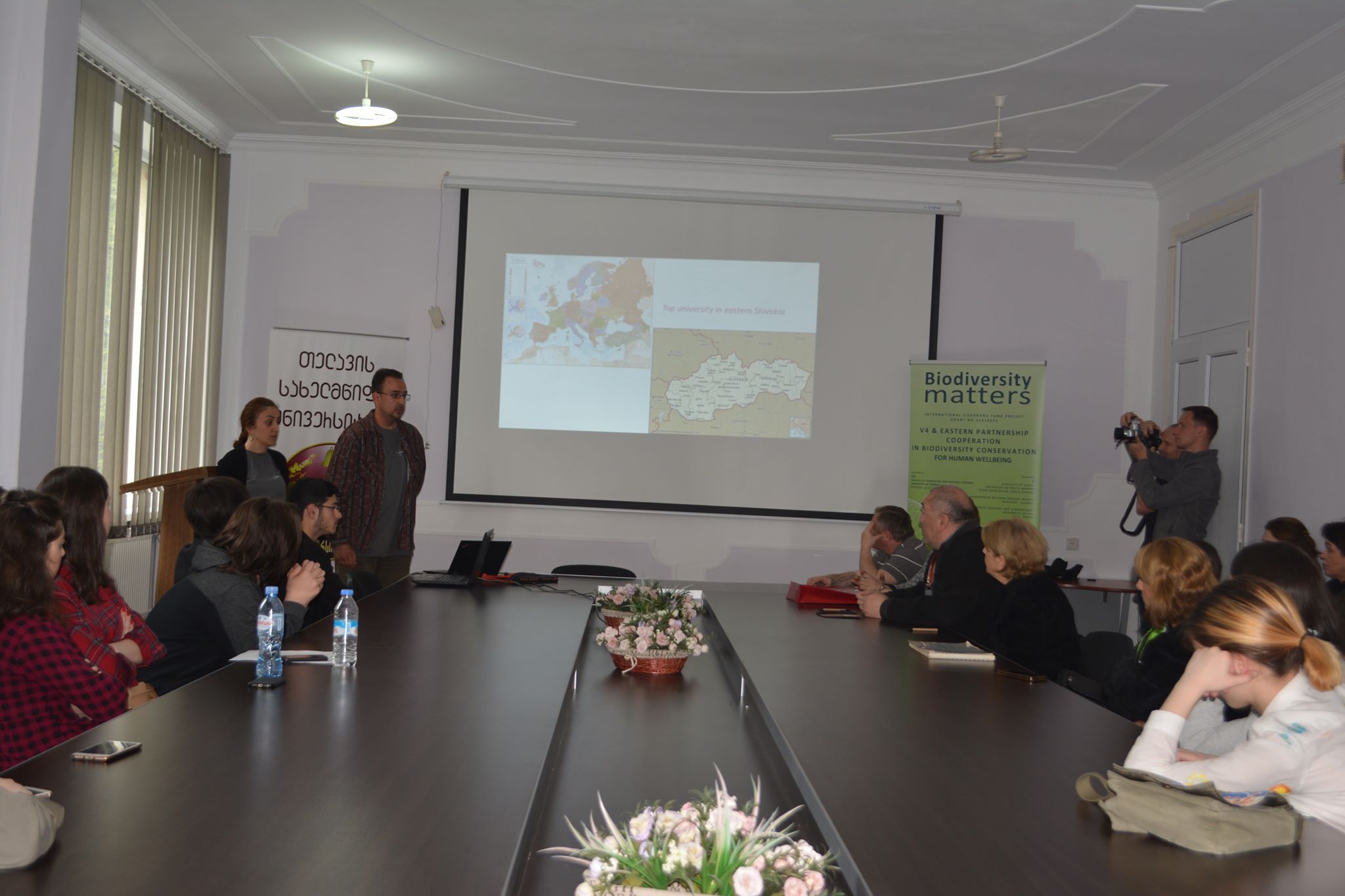 1 მაისს, იაკობ გოგებაშვილის სახელობის თელავის სახელმწიფო უნივერსიტეტში, პროექტის -,,V4 და აღმოსავლეთ პარტნიორობის თანამშრომლობა ბიომრავალფეროვნების კონსერვაციაში ადამიანის კეთილდღეობისათვის" -ფარგლებში, სემინარი გაიმართა.