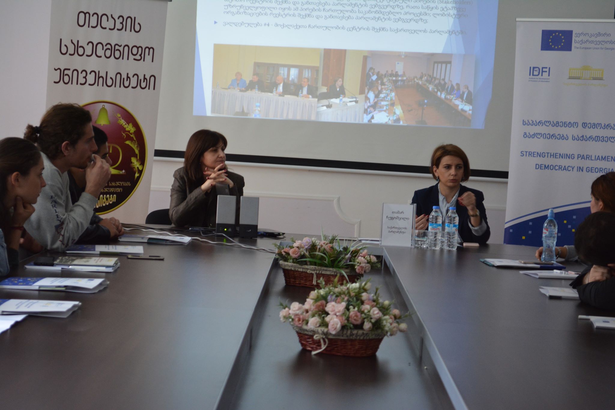 შეხვედრა - „პარლამენტის დღე უნივერსიტეტში“ -კამპანიის ფარფლებში, ჩატარდა. ამ ინიციატივის მხარდამჭერები არიან: ევროკავშირი (EU), გაეროს განვითარების პროგრამა (UNDP) და ,,ინფორმაციის თავისუფლების ინსტიტუტი (IDFI)“.