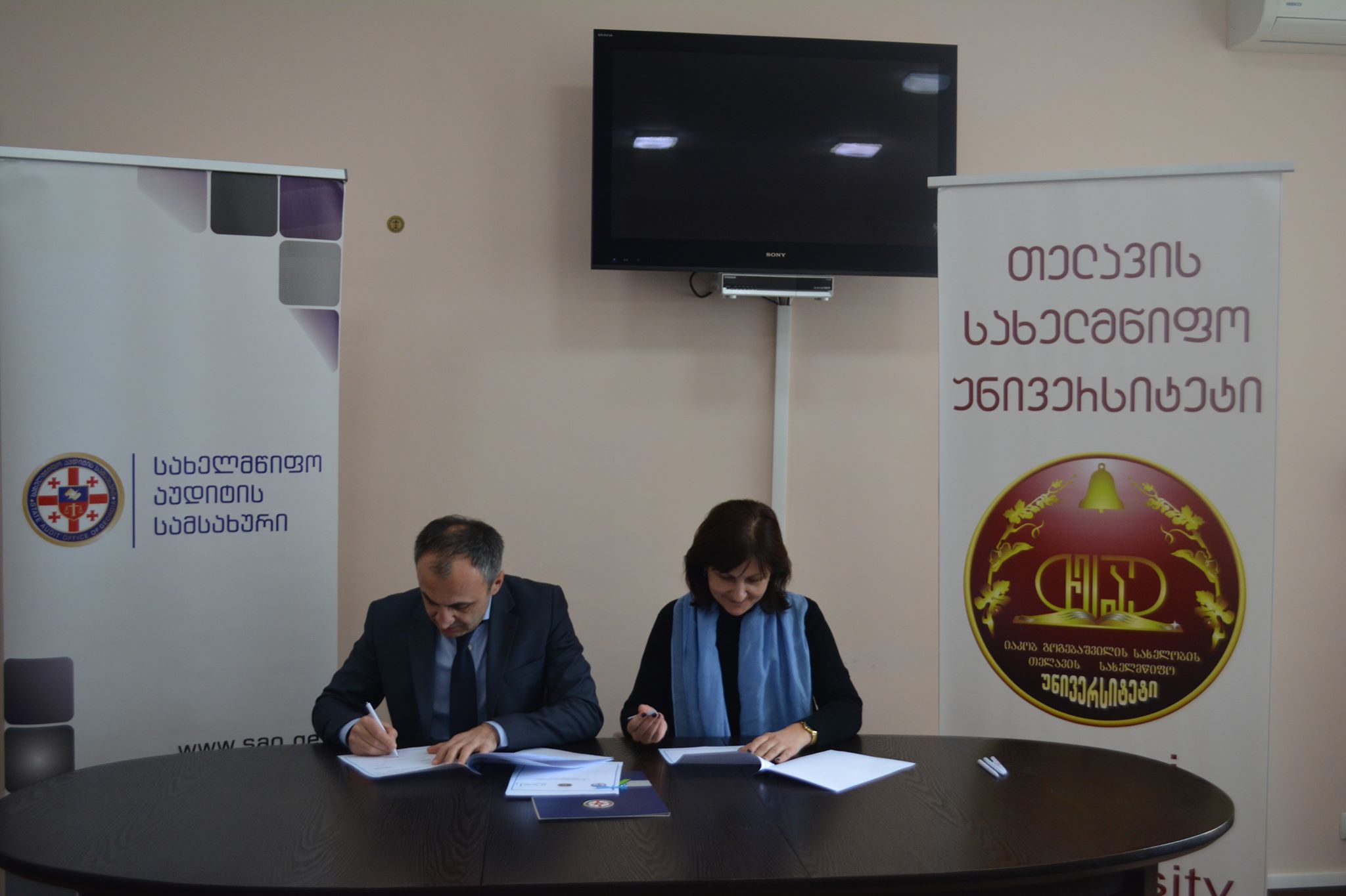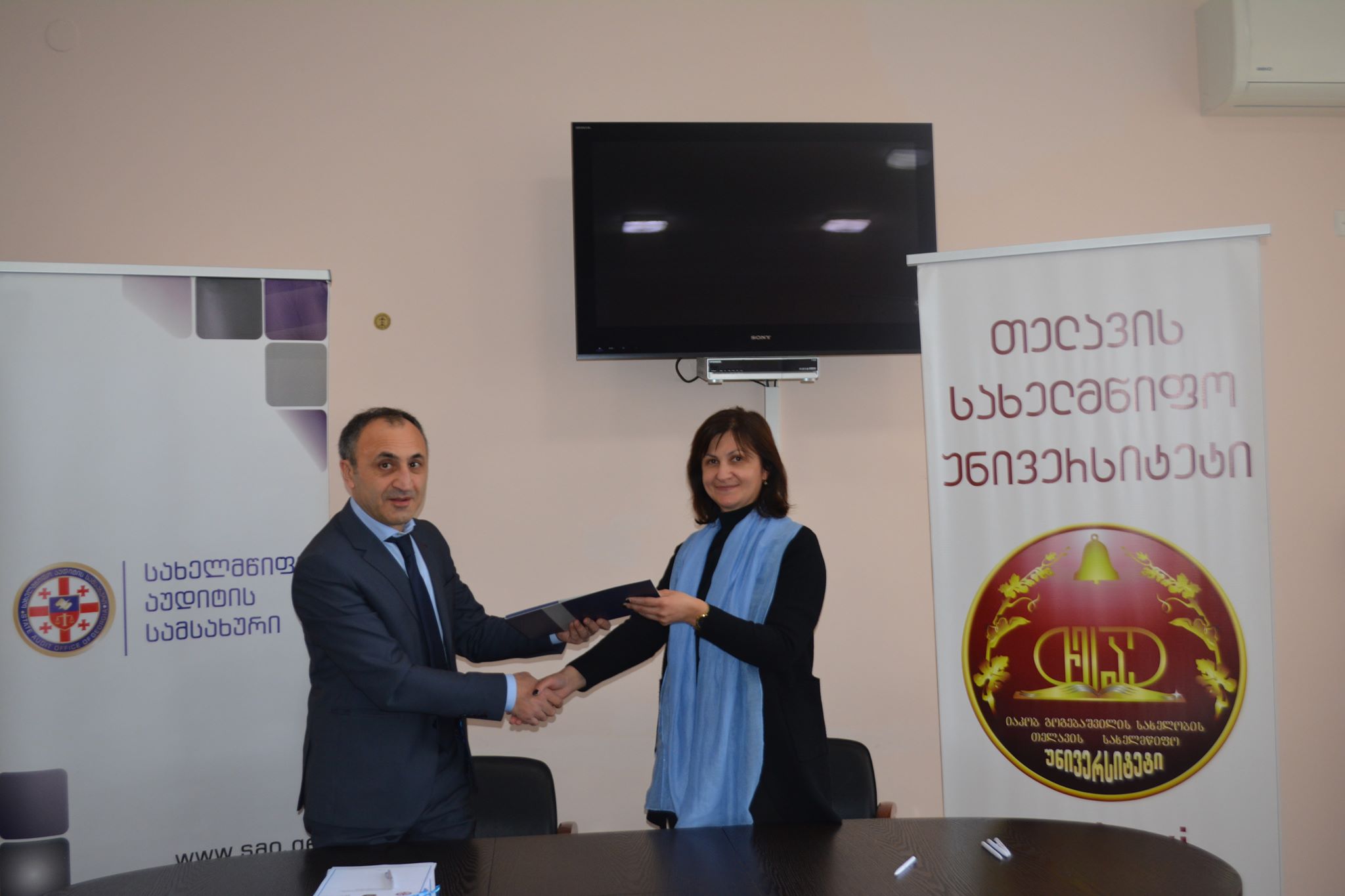 იაკობ გოგებაშვილის სახელობის თელავის სახელმწიფო უნივერსიტეტს, საჯარო აუდიტის ინსტიტუტს და სახელმწიფო აუდიტის სამსახურს შორის 26 ნოემბერს, საჯარო აუდიტის დარგში სასწავლო პროგრამების განხორციელების შესახებ, ურთიერთთანამშრომლობის მემორანდუმი გაფორმდა.