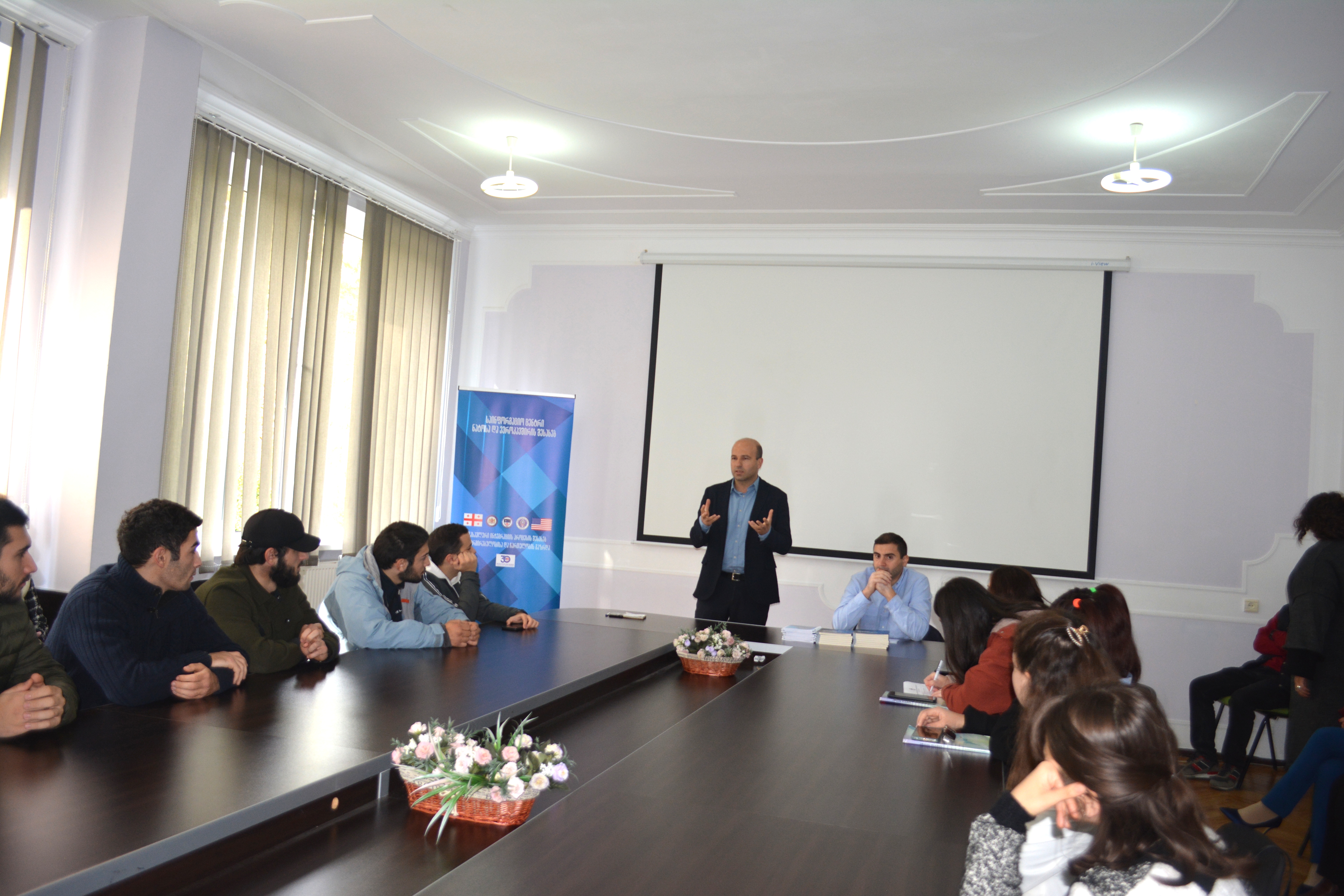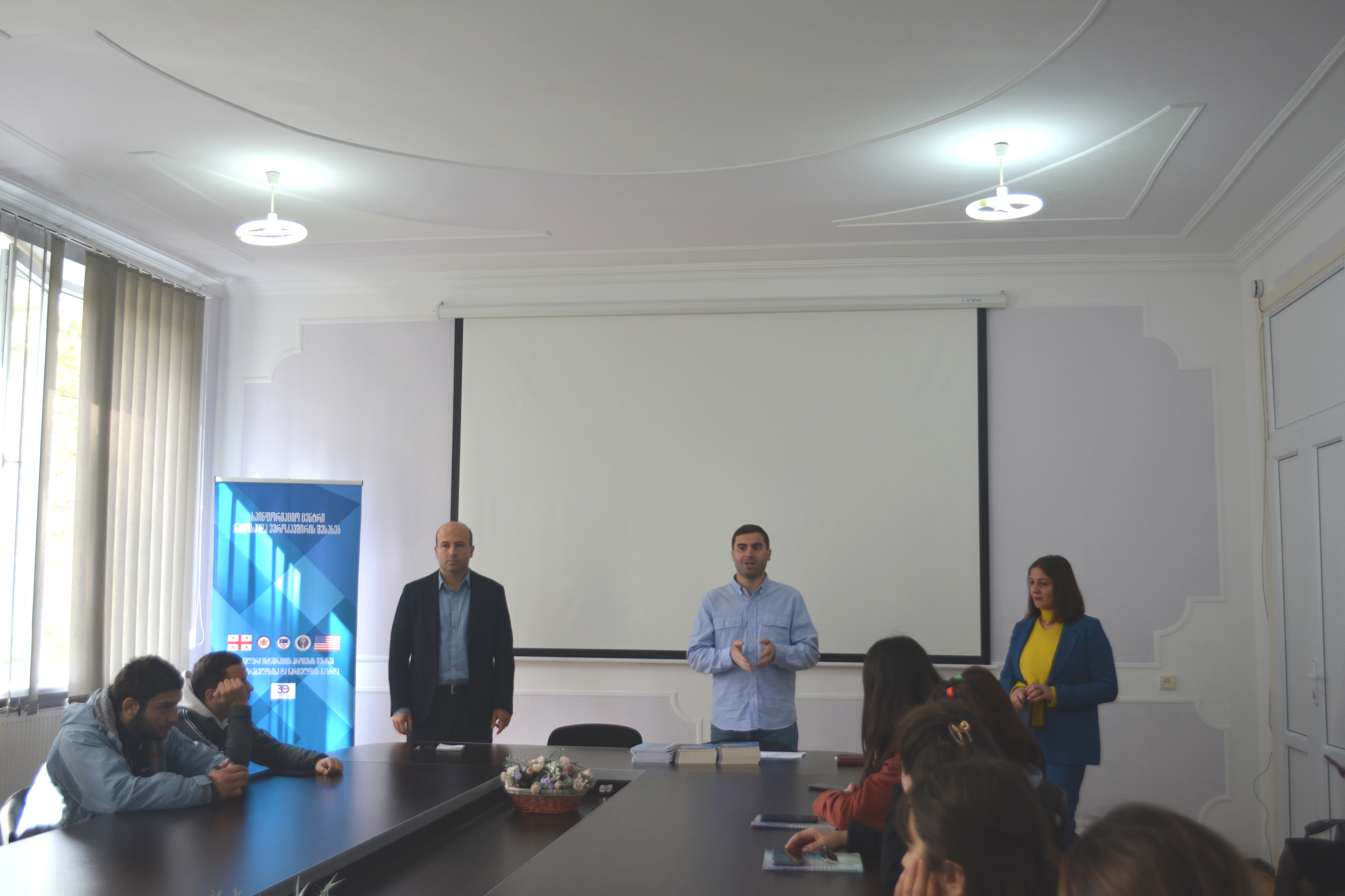 შეხვედრას უძღვებოდა ნატოსა და ევროკავშირის შესახებ საინფორმაციო ცენტრის კახეთის რეგიონული ბიუროს წარმომადგენელი - ბექა ექსეულიძე, აგრეთვე საგარეო საქმეთა სამინისტროს მოწვეული ექსპერტი, ევროკავშირის დეპარტამენტის დირექტორი დავით ბუჯიაშვილი. მან ,,საქართველოს ევროინტეგრაციის გზაზე არსებული სიკეთეების და სამომავლო პერსპექტივების შესახებ’’ ისაუბრა.