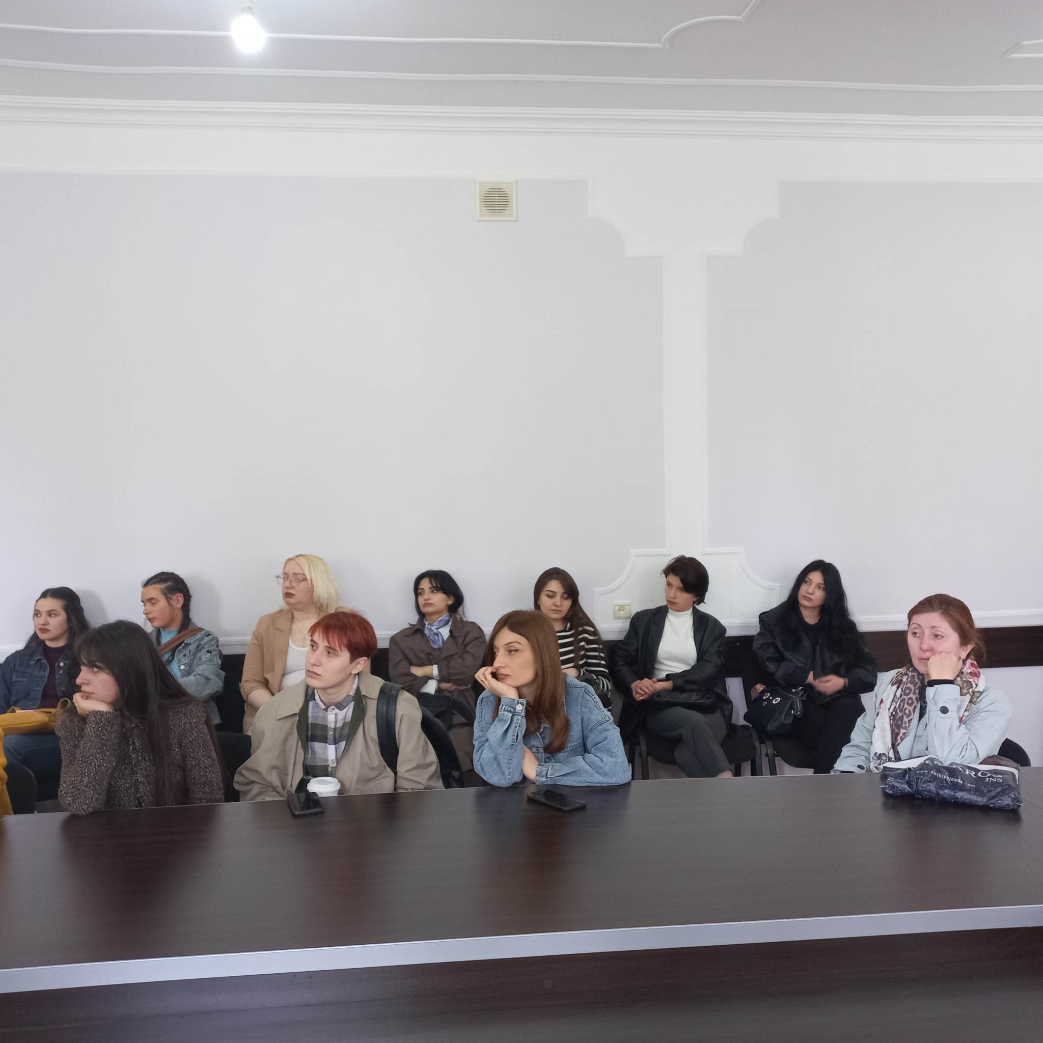 ენის კვირეულის ფარგლებში გამართულ პრეზენტაციას, უნივერსიტეტის პროფესორ-მასწავლებლები და სტუდენტები ესწრებოდნენ.