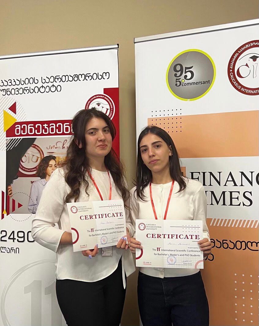 სოციალურ მეცნიერებათა, ბიზნესის და სამართლის ფაკულტეტის, ბიზნეს ადმინისტრირების საბაკალავრო საგანმანათლებლო პროგრამის მეორე კურსის სტუდენტებმა, მარიამ მარკოზაშვილმა და ელენე ზაალიშვილმა, კონფერენციის მონაწილეებს, ბიზნეს ტექნოლოგიების მიმართულებით ერთობლივი ნაშრომი წარუდგინეს.