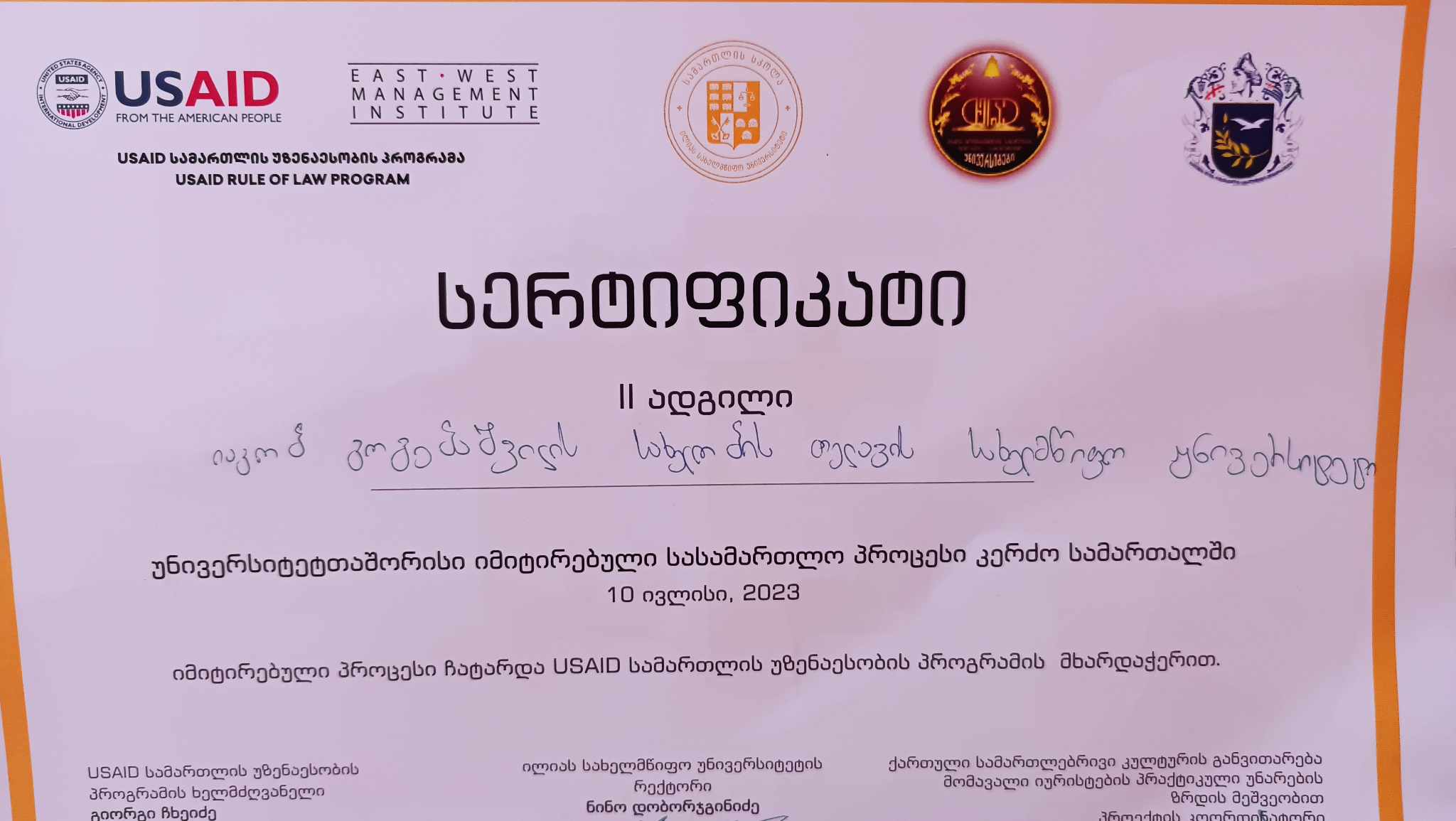 იაკობ გოგებაშვილის სახელობის თელავის სახელმწიფო უნივერისტეტის სოციალურ მეცნიერებათა, ბიზნესისა და სამართლის ფაკულტეტის სტუდენტებმა სასამართლო კონკურსში პირველი და მეორე ადგილები დაიკავეს.