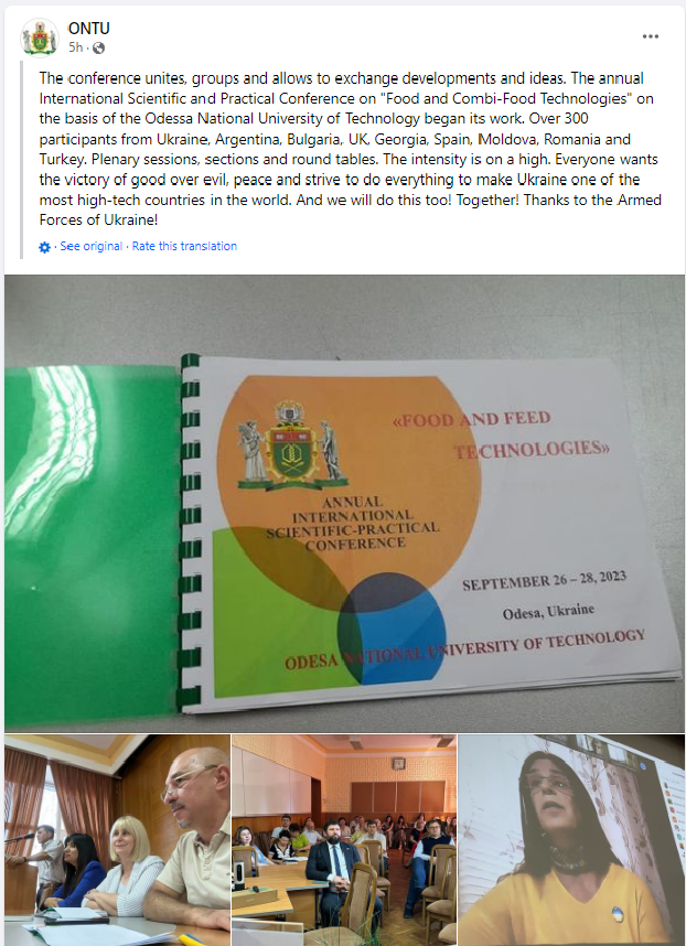 კონფერენცია უკრაინის, ოდესის ნაციონალური ტექნოლოგიური. უნივერსიტეტისა და ბულგარეთის რესპუბლიკის პლოვდივის კვების ტექნოლოგიების უნივერსიტეტის ორგანიზებით ჩატარდა.