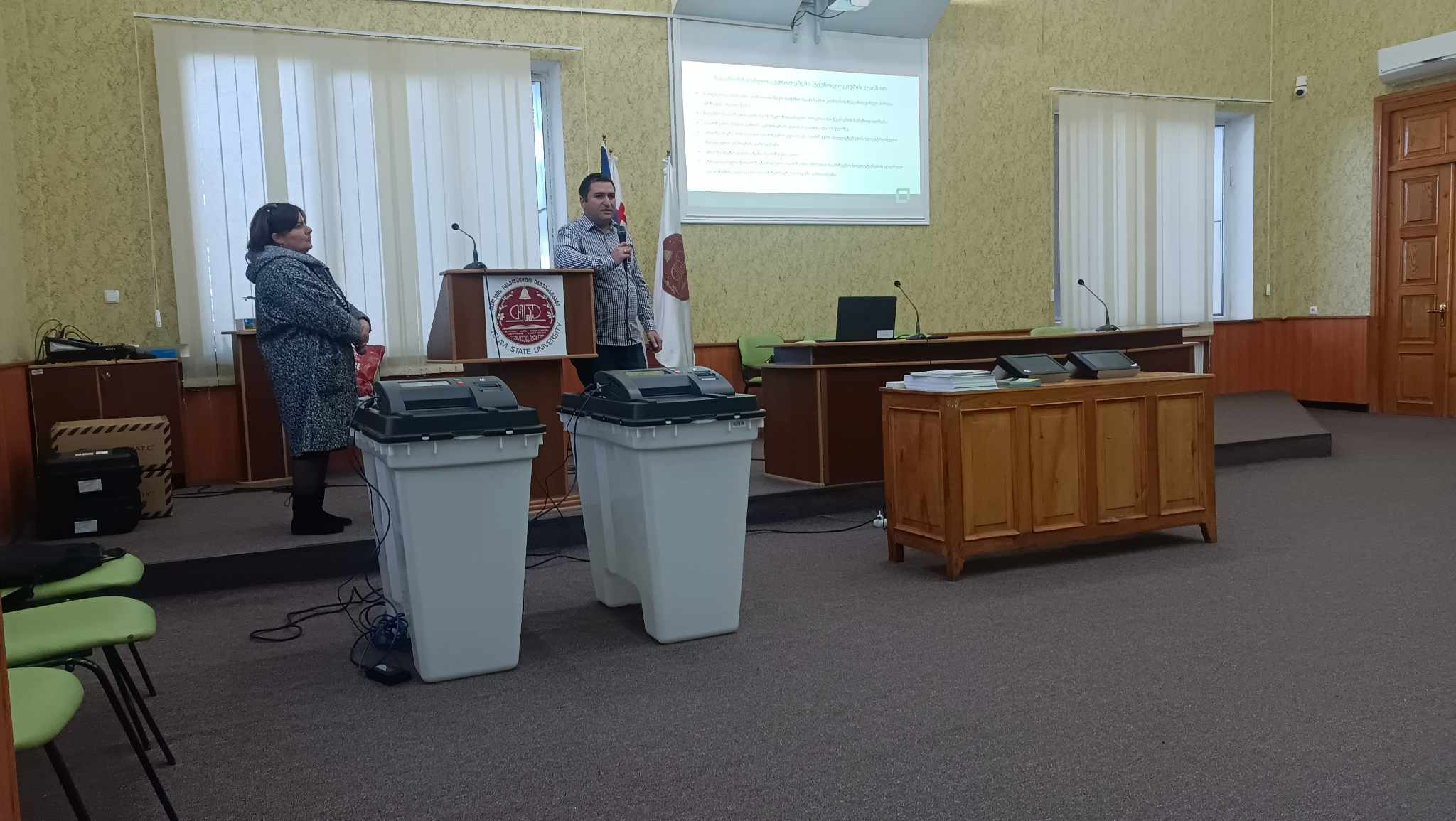 თელავში, არჩევნებზე ხმის მიცემის ელექტრონული სისტემის გაცნობა, ცენტრალურმა საარჩევნო კომისიამ იაკობ გოგებაშვილის სახელობის თელავის სახელმწიფო უნივერსიტეტიდან დაიწყო.