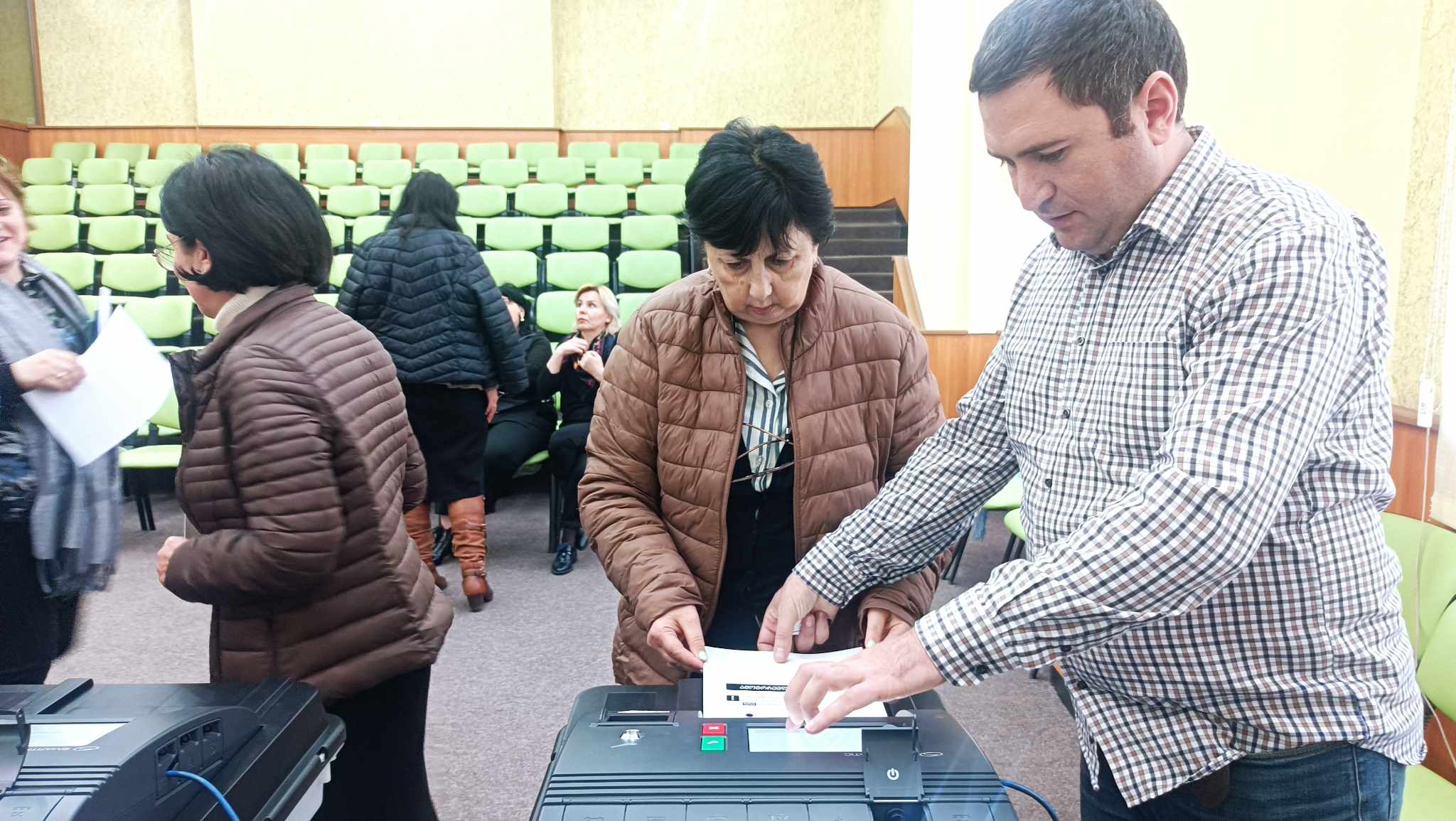 შეხვედრის მონაწილეები, ხმის ელექტრონულად მიცემის პროცესს, ადგილზე დამონტაჟებული ვერიფიკაციის აპარატისა და ელექტრონული მთვლელის საშუალებით, პრაქტიკულად გაეცნენ.