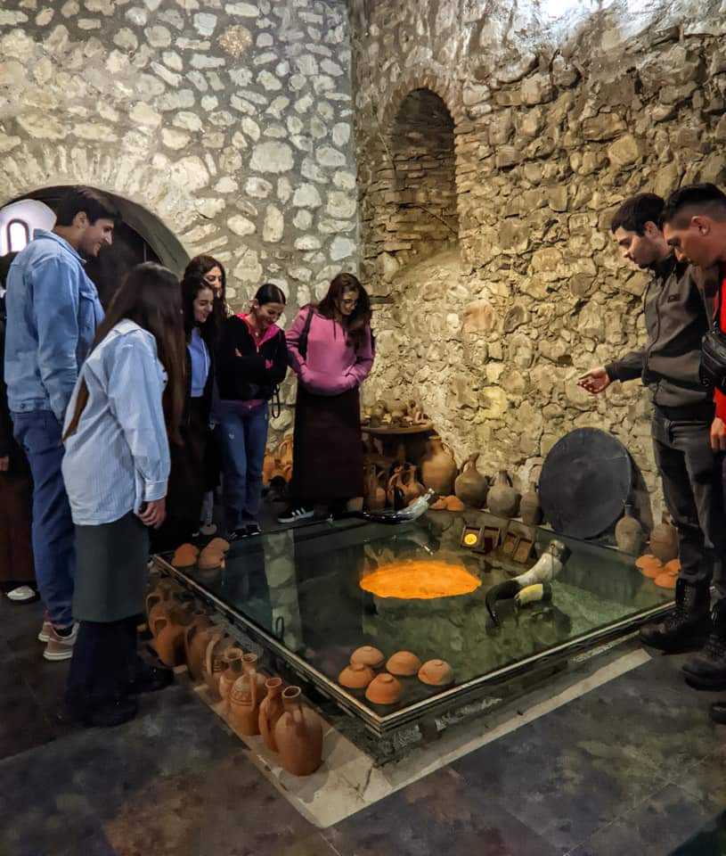 ტურის მონაწილეებმა, ალავერდის ისტორიული მარანი და არქეოლოგიური გათხრების შედეგად აღმოჩენილი უძველესი ნივთები დაათვალიერეს.
