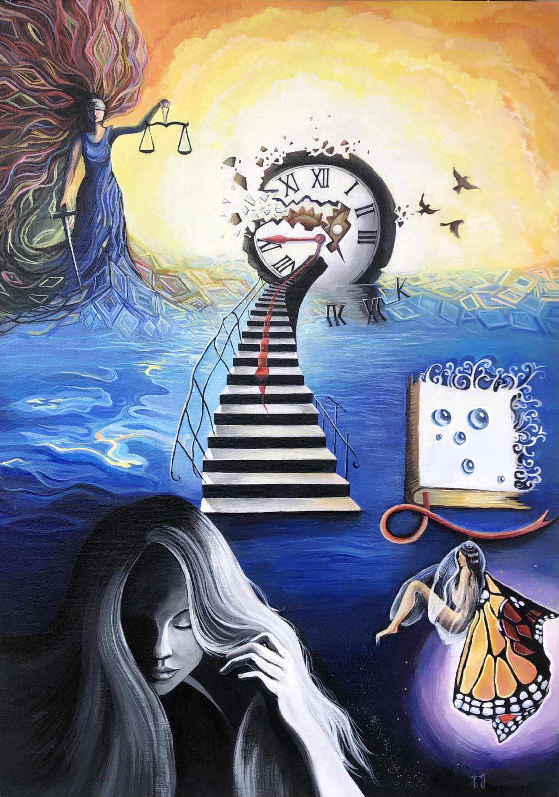 ნახატი სათაურით, " დროში მოგზაურობა" ნინო მამულაშვილმა, სპეციალურად კონკურსისთვის შექმნა.