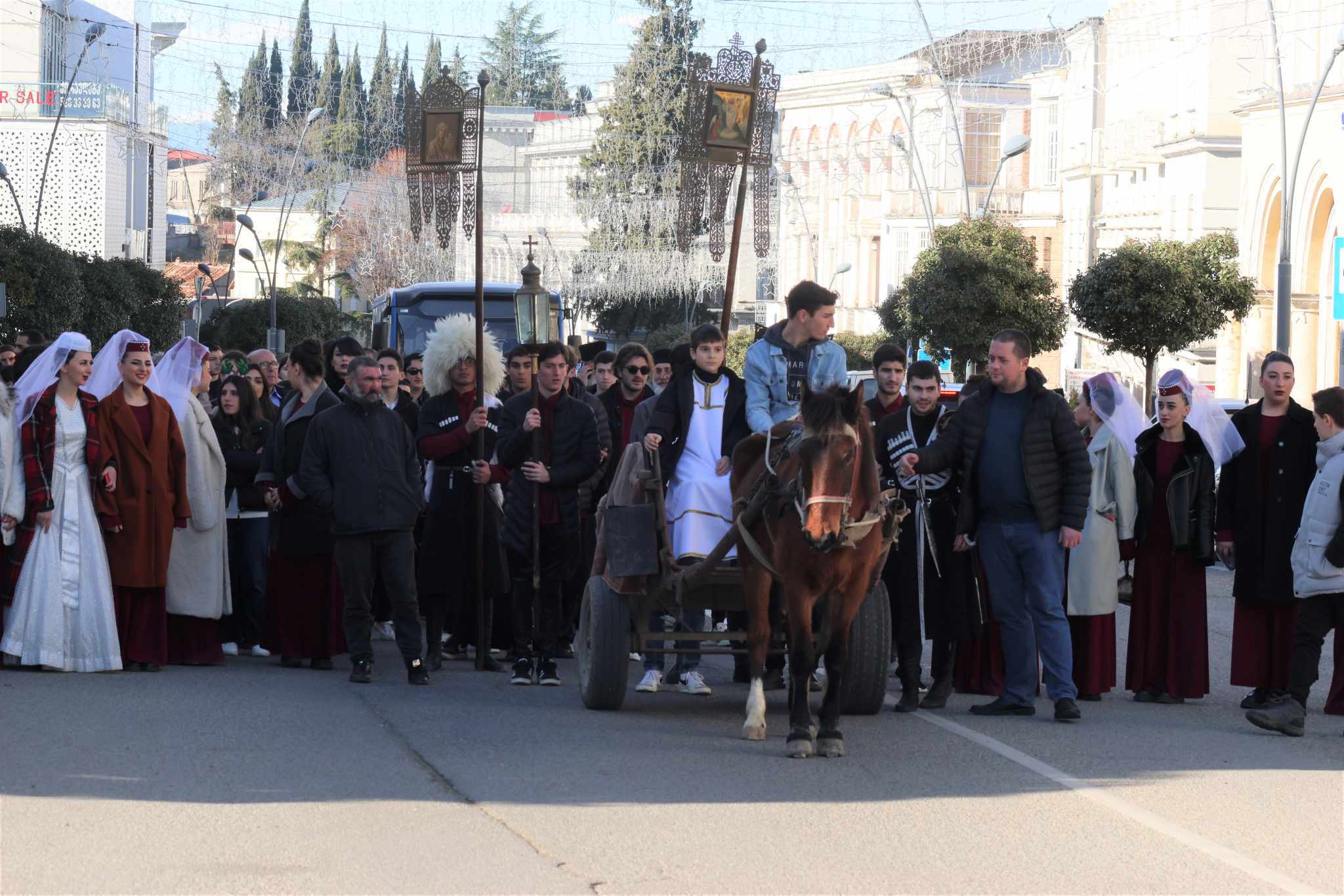 მსვლელობა ღვთაების მონასტრიდან დაიწყო, სადაც ალავერდის ეპარქიის მღვდელმსახურებმა საშობაო ლიტურგია ჩაატარეს.