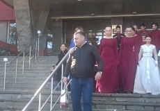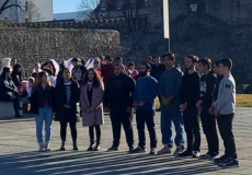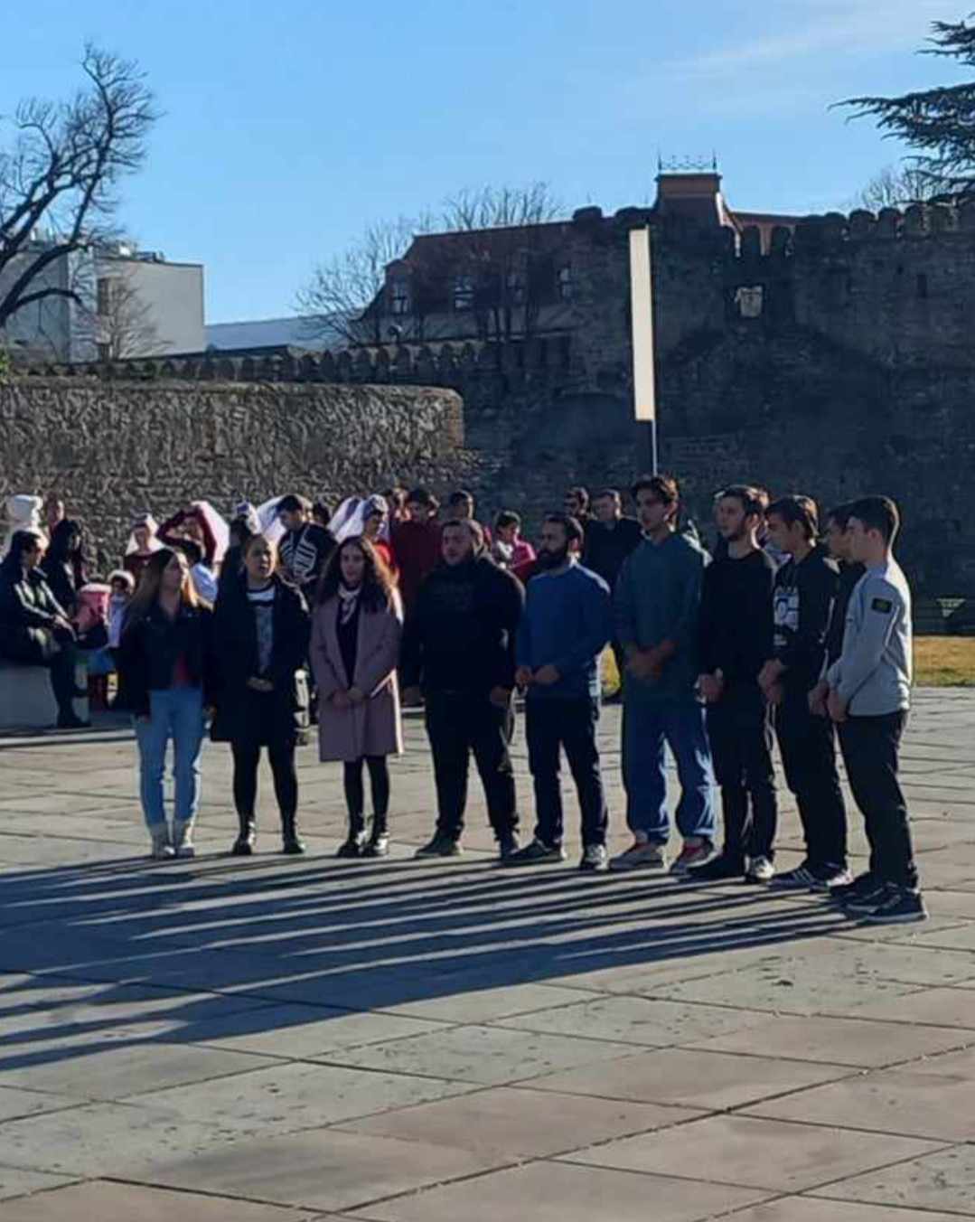 იაკობ გოგებაშვილის სახელობის თელავის სახელმწიფო უნივერსიტეტის სტუდენტები საშობაო ალილოს მსვლელობისათვის უნივერსიტეტის წინ შეიკრიბნენ.