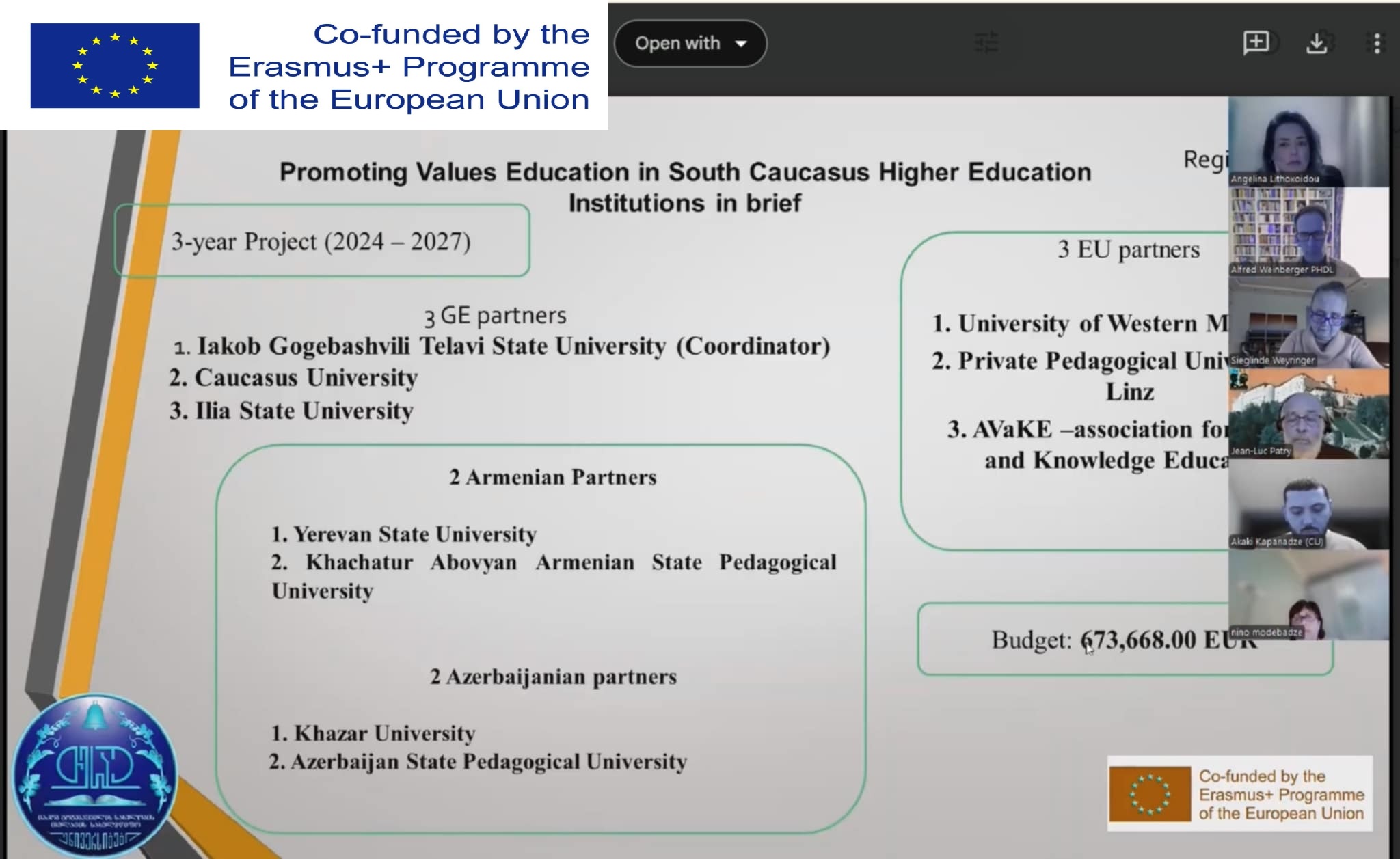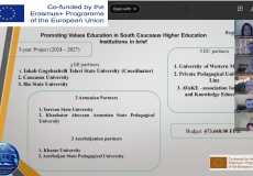 პროექტის „ღირებულებითი განათლების ხელშეწყობა სამხრეთ კავკასიის უმაღლესი საგანმანათლებლო დაწესებულებებისთვის" ფარგლებში, ონლაინ შეხვედრას ესწრებოდნენ პროექტის პარტნიორები ევროპიდან, სომხეთიდან , აზერბაიჯანიდან და საქართველოდან.
