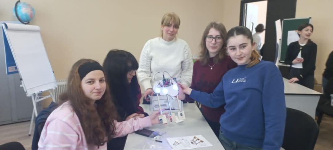 ბიოლოგიის მასწავლებლის, ნინო პიდათოვის ხელმძღვანელობით, მოსწავლეებმა იმუშავეს STEAMit სთიმითი -ის ინოვაციურ სასწავლო ნაკრებზე "ნეიროინჟინერია".