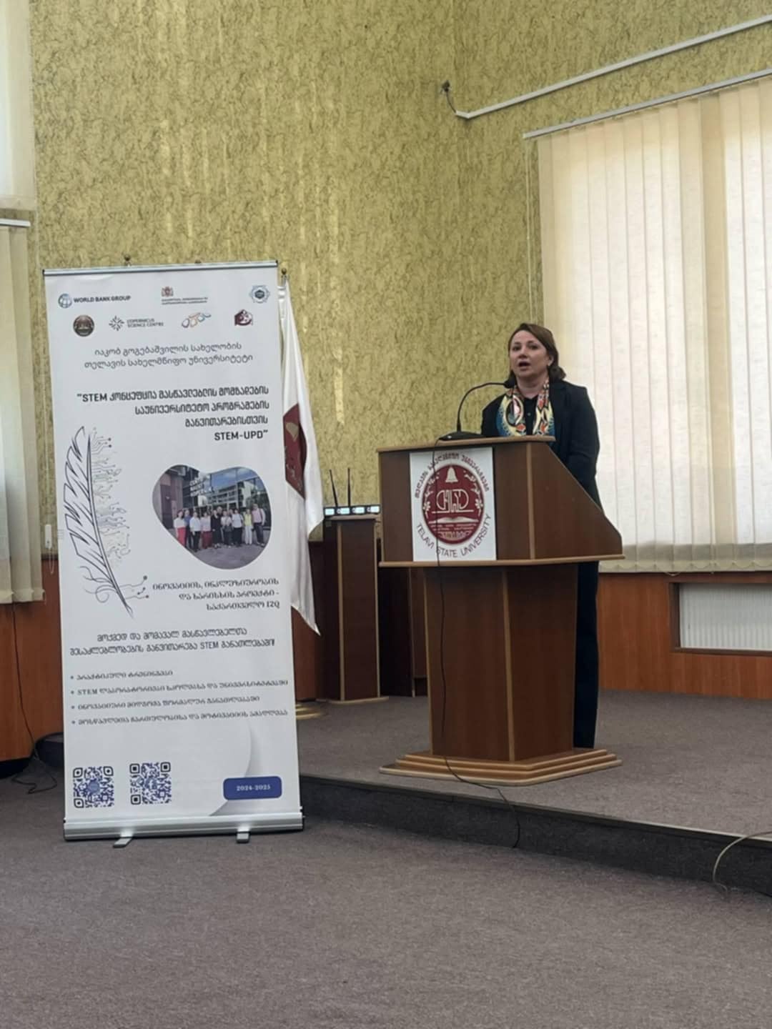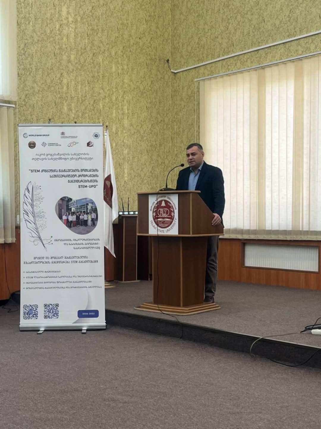 თესაუში STEM კონცეფცია მასწავლებლის მომზადების საგანმანათლებლო საუნივერსიტეტო პროგრამების განვითარებისთვის STEM-UPD" ფარგლებში მიმდინარე, მოქმედ და მომავალ მასწავლებელთა გრძელვადიანი ტრენინგის შემაჯამებელი შეხვედრა გაიმართა. შეხვედრას კახეთის რეგიონის 20 სკოლის წარმომადგენლები და განათლების მეცნიერებათა ფაკულტეტის სტუდენტები ესწრებოდნენ.