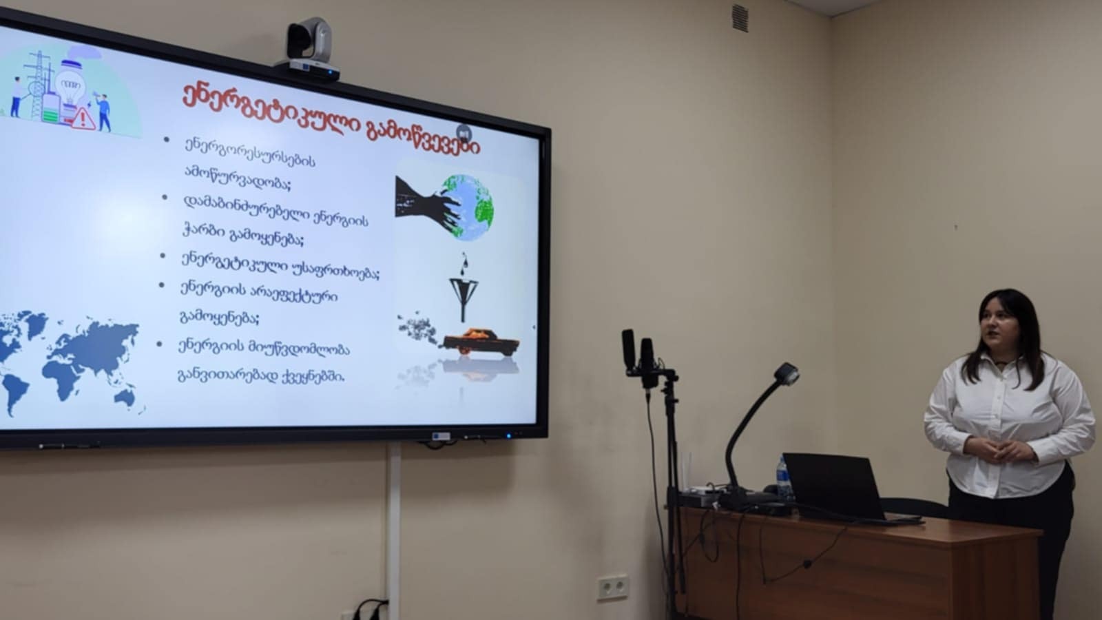 ეკოლოგიის სამაგისტრო საგანმანათლებლო პროგრამის I კურსის სტუდენტმა ლიკა თანდილაშვილმა, აგრარულ, საბუნებისმეტყველო მეცნიერებათა და ტექნოლოგიების ფაკულტეტის პროფესორის მაგდა დავითაშვილისა და ასოცირებული პროფესორის ნანა ბერძენიშვილის ხელმძღვანელობით, წარადგინა პრეზენტაცია ენერგიის განახლებადი წყაროების და ენერგოეფექტურობის შესახებ.