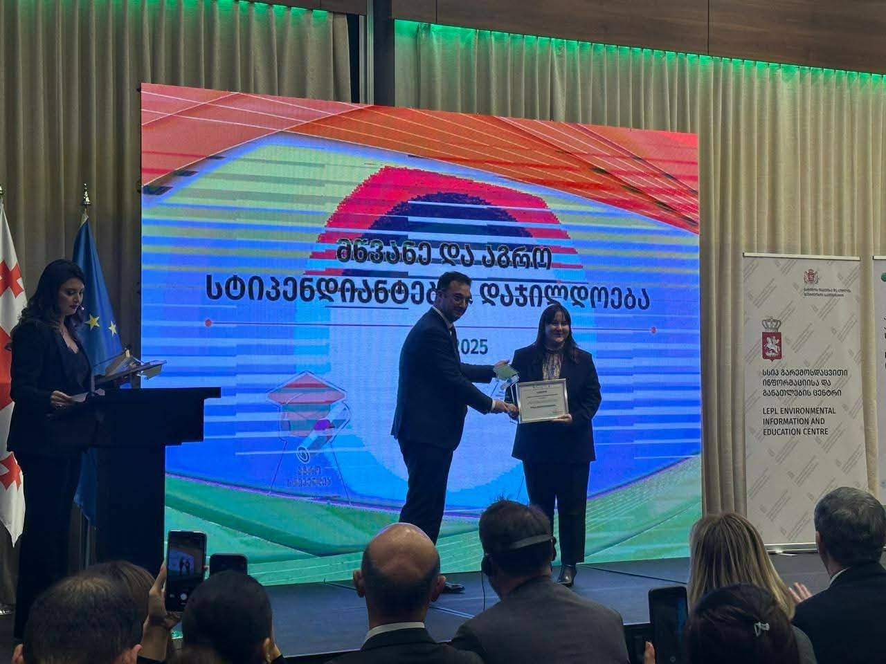 დაჯილდოების ცერემონიას უნივერსიტეტის რექტორი შალვა ჭკადუა და აგრარულ, საბუნებისმეტყველო მეცნიერებათა და ტექნოლოგიების ფაკულტეტის დეკანი ლევან შავაძე ესწრებოდნენ.