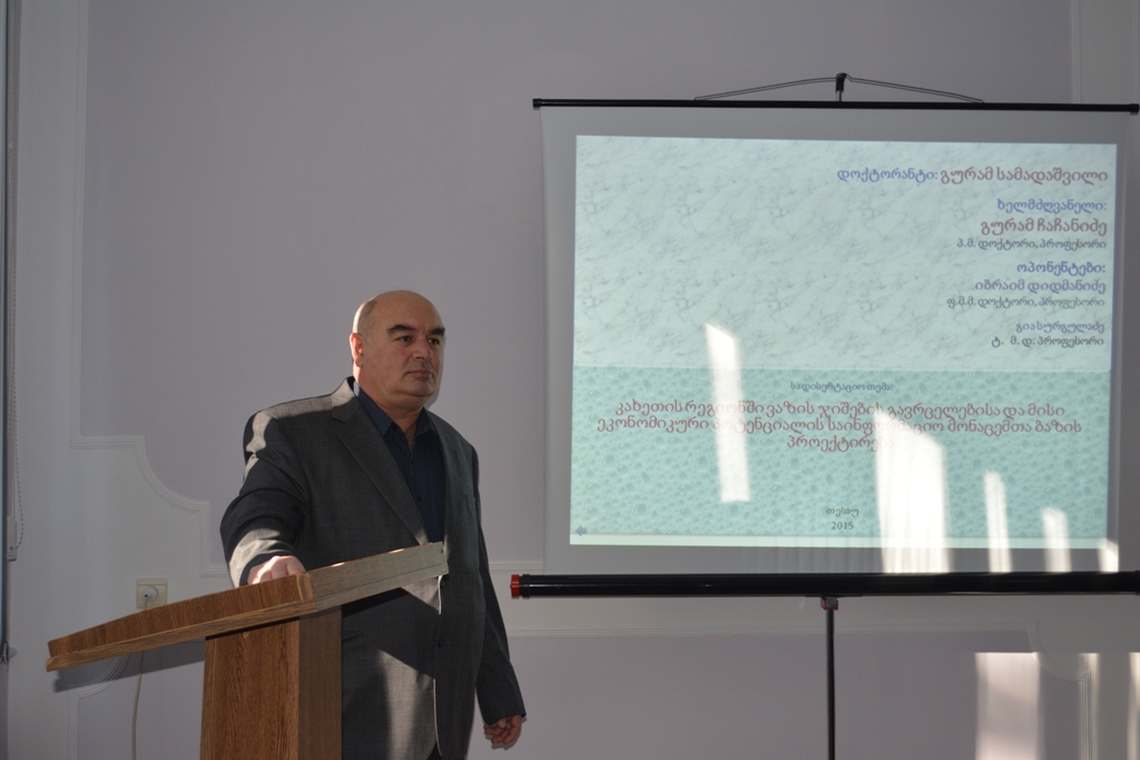 სხდომაზე დოქტორანტ გურამ სამადაშვილის სადისერტაციო ნაშრომის -,,კახეთის რეგიონში ვაზის ჯიშების გავრცელებისა და მისი ეკონომიკური პოტენციალის საინფორმაციო მონაცემთა ბაზის პროექტირება-საჯარო დაცვა გაიმართა (სამეცნიერო ხელმძღვანელი- პედაგოგიკურ მეცნიერებათა დოქტორი, პროფესორი გურამ ჩაჩანიძე).
