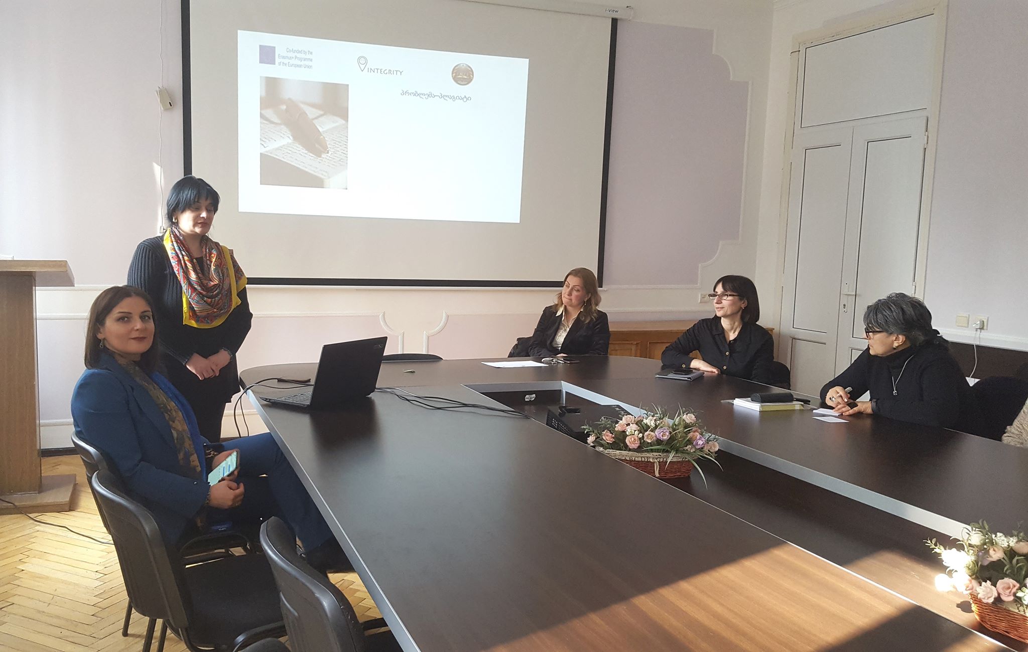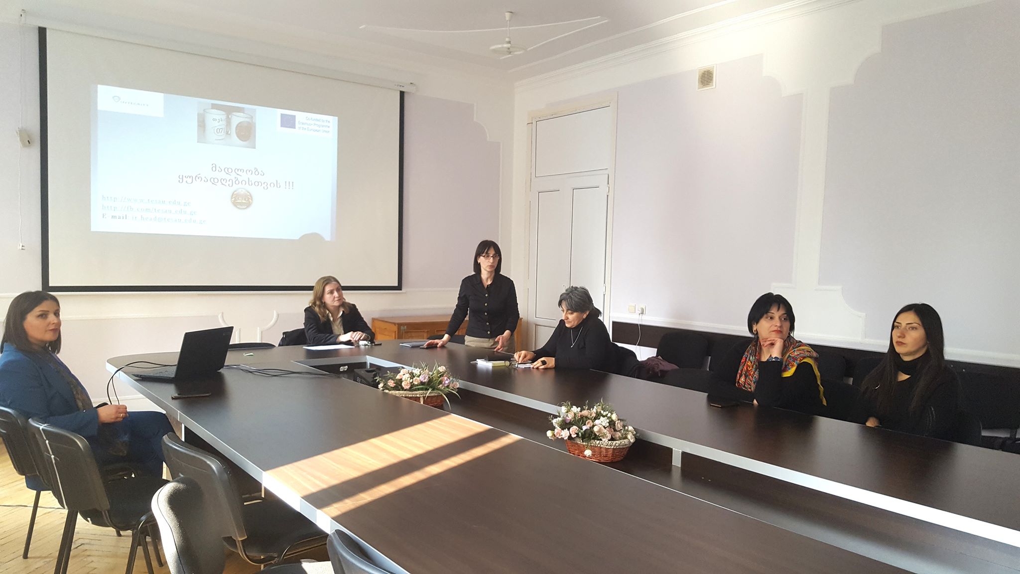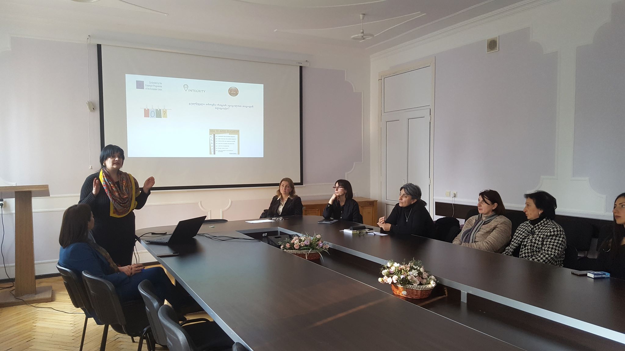 პლაგიატის წინააღმდეგ ბრძოლის შესახებ პრეზენტაცია თესაუს საერთაშორისო ურთიერთობების სამსახურის უფროსმა, თამარ ასლანიშვილმა, გამართა. პედაგოგები დეტალურად გაეცნენ პლაგიატის უარყოფით როლს და აკადემიური არაკეთილსინდისიერებით გამოწვეულ საფრთხეებს. შეხვედრაზე საუბარი „Turnitin“-ის მოდულს, პლაგიატის აღმოჩენის ტექნიკურ შესაძლებლობებს, ასევე, უნივერსიტეტის საქმიანობას, საერთაშორისო პროექტებს სხვა საკითხებს შეეხო.
