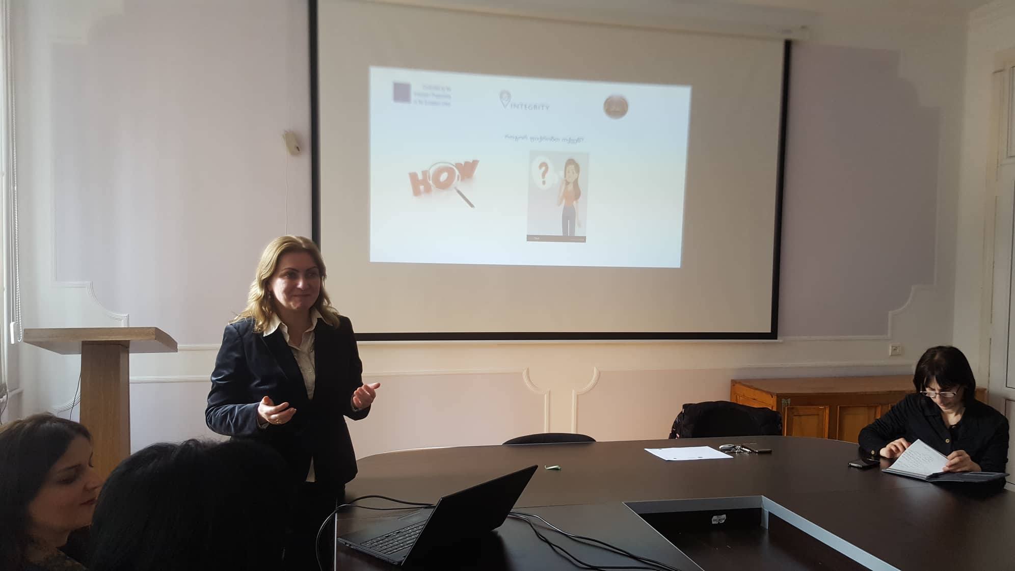 21 თებერვალს, იაკობ გოგებაშვილის სახელობის თელავის სახელმწიფო უნივერსიტეტში, „INTEGRITY“-ის პროგრამის ფარგლებში, ადგილობრივი საჯარო სკოლების პედაგოგებისთვის საინფორმაციო შეხვედრა ჩატარდა.