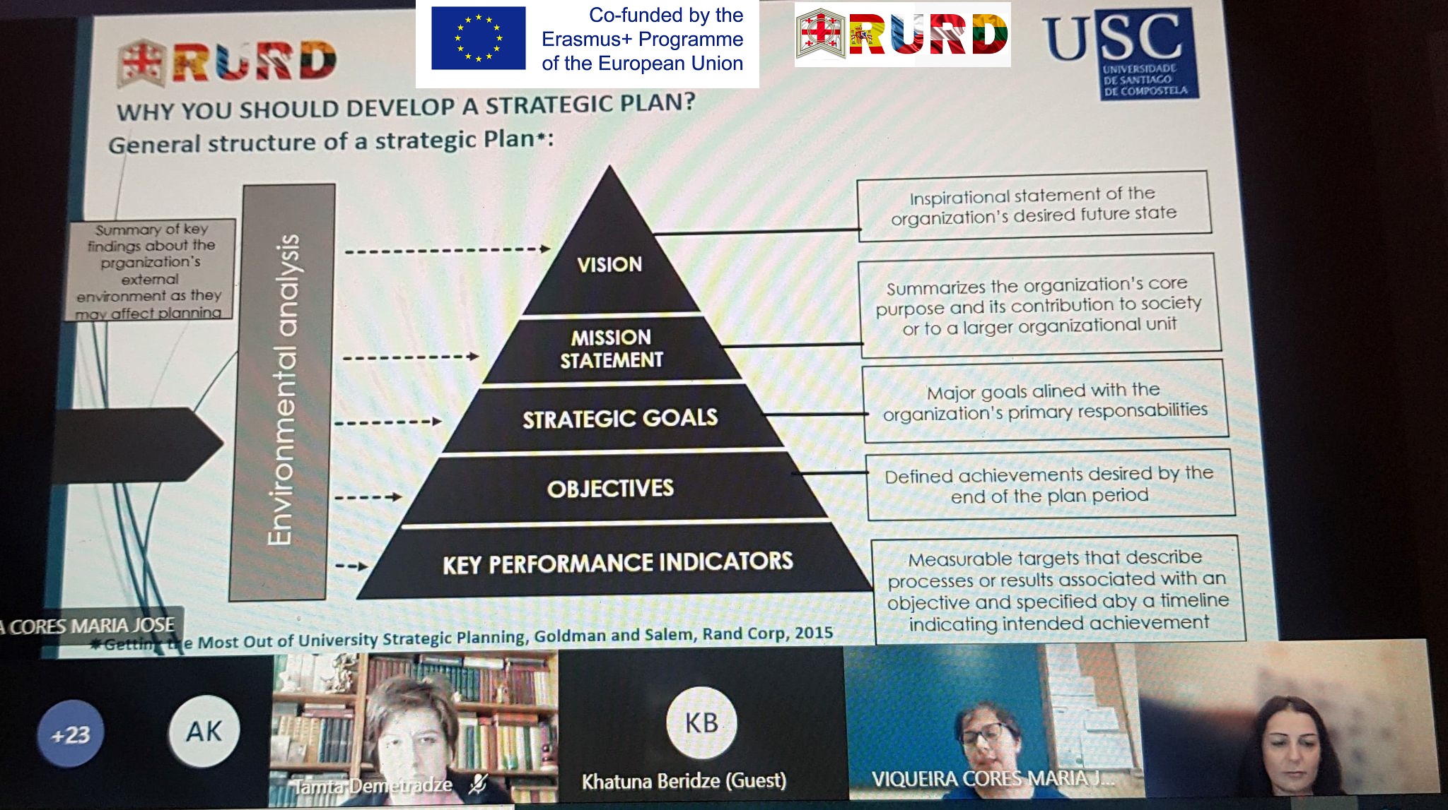 სანტიაგო დე კომპოსტელას უნივერსიტეტის წარმომადგენლებმა შეხვედრის მონაწილეებს გამოცდილება ინტერნაციონალიზაციის სტრატეგიული გეგმის შედგენის, ახალი პარტნიორების მოძიების და ზოგადად, ინსტიტუციის ინტერნაციონალიზაციის გზების ჩამოყალიბების შესახებ გაუზიარეს.