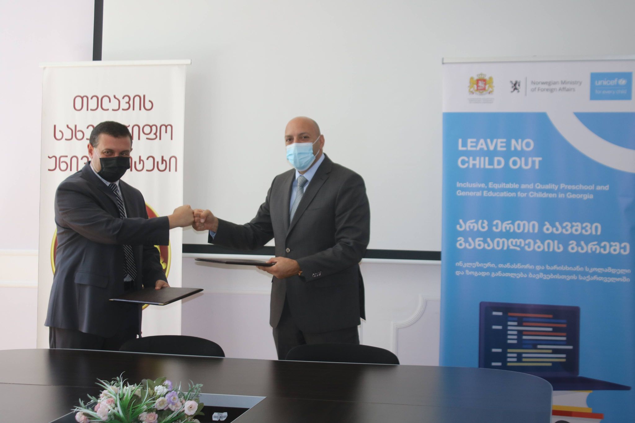 შეხვედრაზე UNICEF-სა და თელავის სახელმწიფო უნივერსიტეტს შორის თანამშრომლობის მემორანდუმი გაფორმდა, რომლის მიზანია, ბავშვთა უფლებების ცენტრის დაფუძნებისა და გაძლიერების გზით, ბავშვთა უფლებების რეალიზების ხელშეწყობა და დაცვა. მხარეები, ურთიერთთანამშრომლობის ფარგლებში, ბავშვთა უფლებების მიმართულებით, ერთობლივი სამეცნიერო კონფერენციების, სემინარების გამართვასა და სხვა აქტივობებს გეგმავენ.