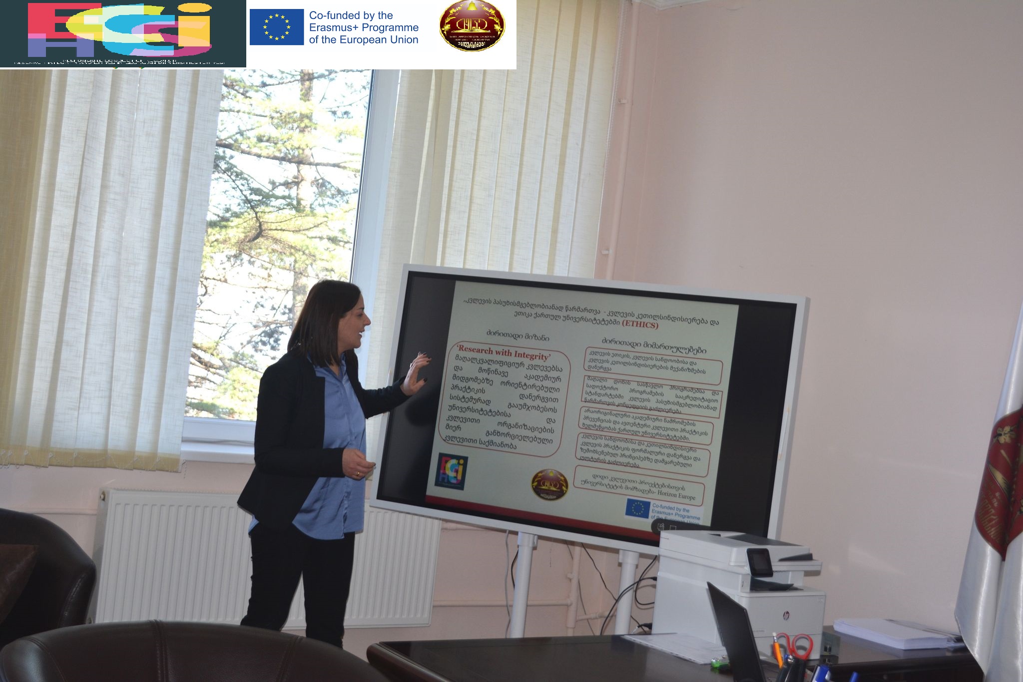3 აპრილს, თელავის სახელმწიფო უნივერსიტეტში, საერთაშორისო პროექტის _ კვლევის პასუხისმგებლიანად წარმართვა - „კვლევის კეთილსინდისიერება და ეთიკა საქართველოს უნივერსიტეტებში (ეთიკა“) _ ფარგლებში შიდა სამუშაო შეხვედრა გაიმართა.