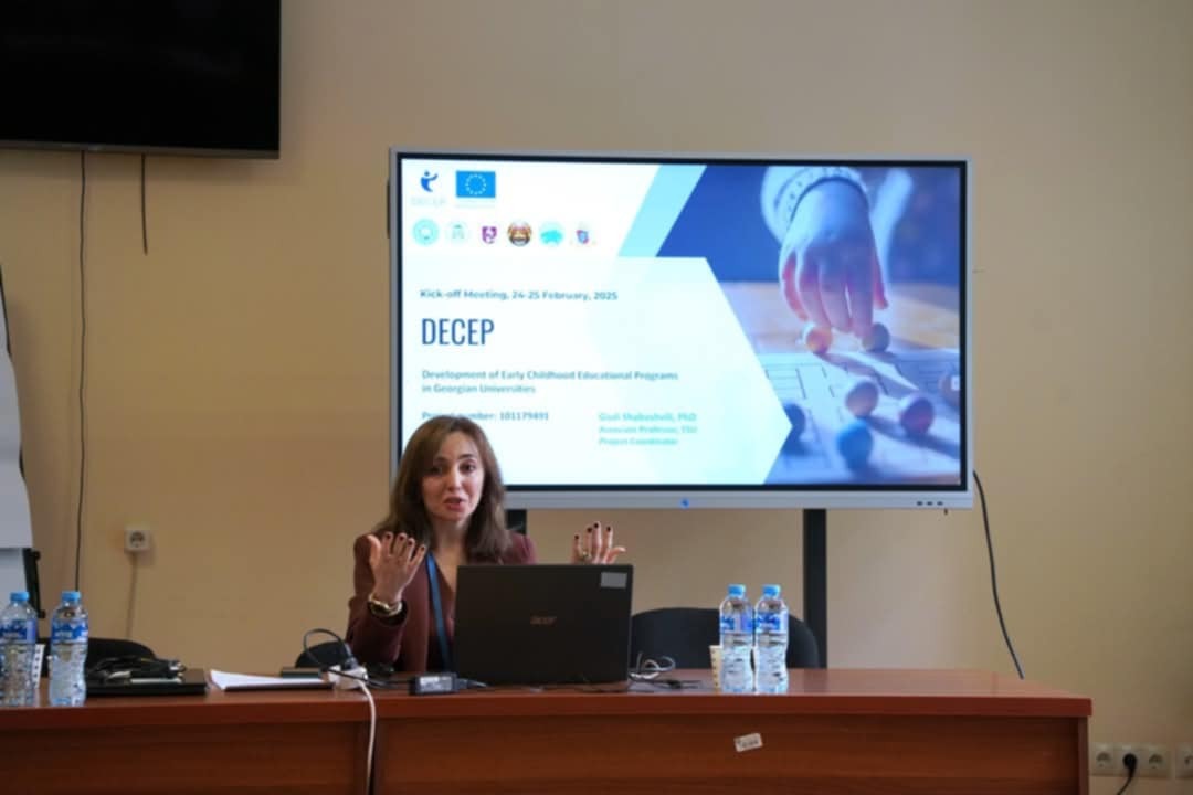 24 და 25 თებერვალს თსუ ფსიქოლოგიისა და განათლების მეცნიერებათა ფაკულტეტზე ჩატარდა ERASMUS-EDU-2024-CBHE პროგრამის ფარგლებში დაფინანსებული პროექტის „საქართველოს უნივერსიტეტებში ადრეული ბავშვობის საგანმანათლებლო პროგრამების შემუშავება“ (Development of Early Childhood Educational Programs in Georgian Universities - DECEP) პირველი სამუშაო შეხვედრა.