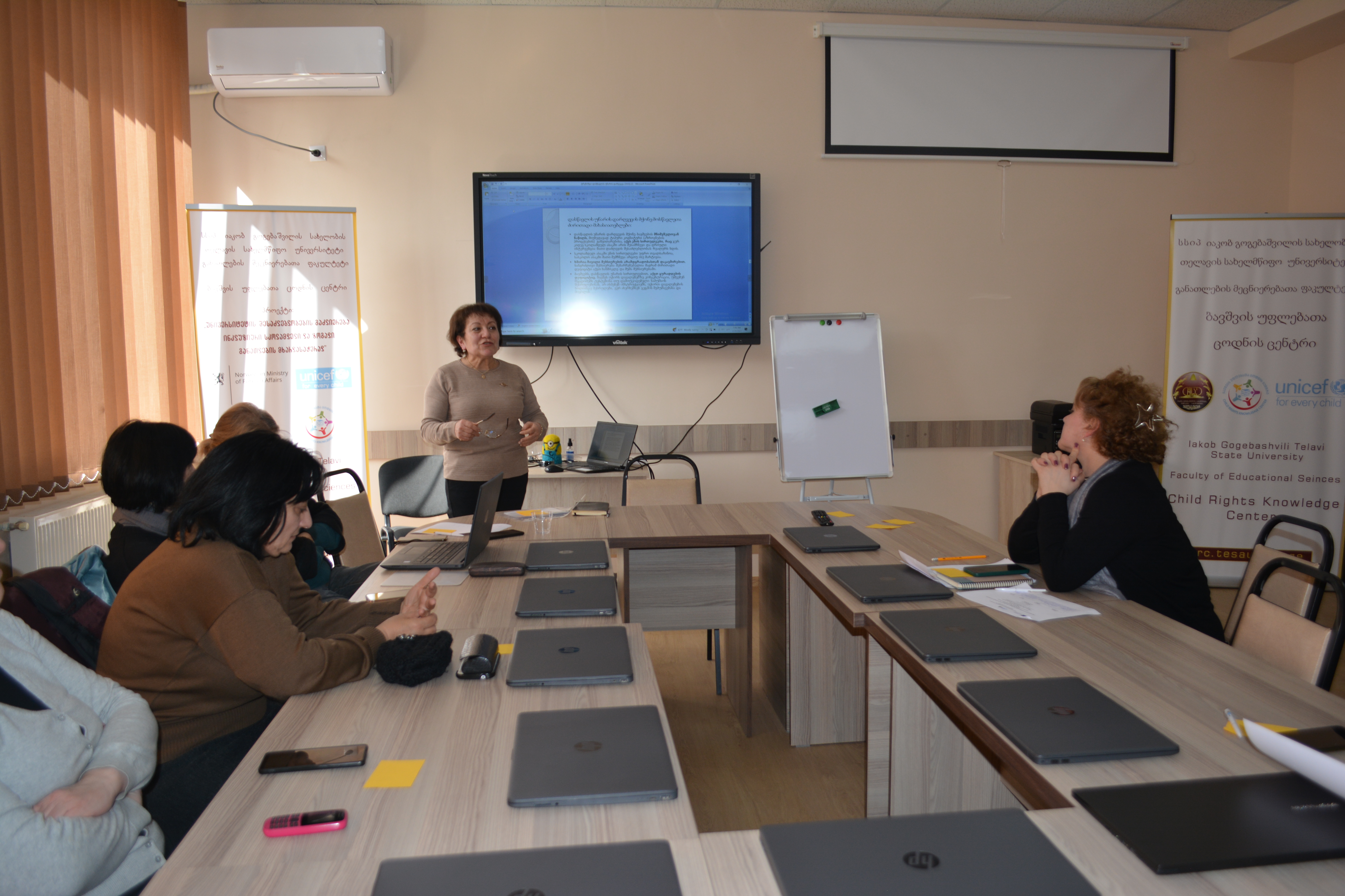 At Iakob Gogebashvili Telavi State University, trainings were held within the framework of the international project co-financed by the European Commission. The training entitled "Intellectual and learning disabilities and their characteristics/preventive measures" was conducted by professors of the Faculty of Education Sciences, project trainers, Nino Modebadze and Nino Nakhutsrishvili for the academic staff of the university. The international project co-financed by the European Commission, "Innovations in the Curriculum to Support Social Engagement," has been implemented at Telavi State University since 2019. Within the framework of the project, three new courses were introduced at Telavi State University, Faculty of Education Sciences, and two short-term trainings were developed. The main goal of the project is to increase the social inclusion of people wi