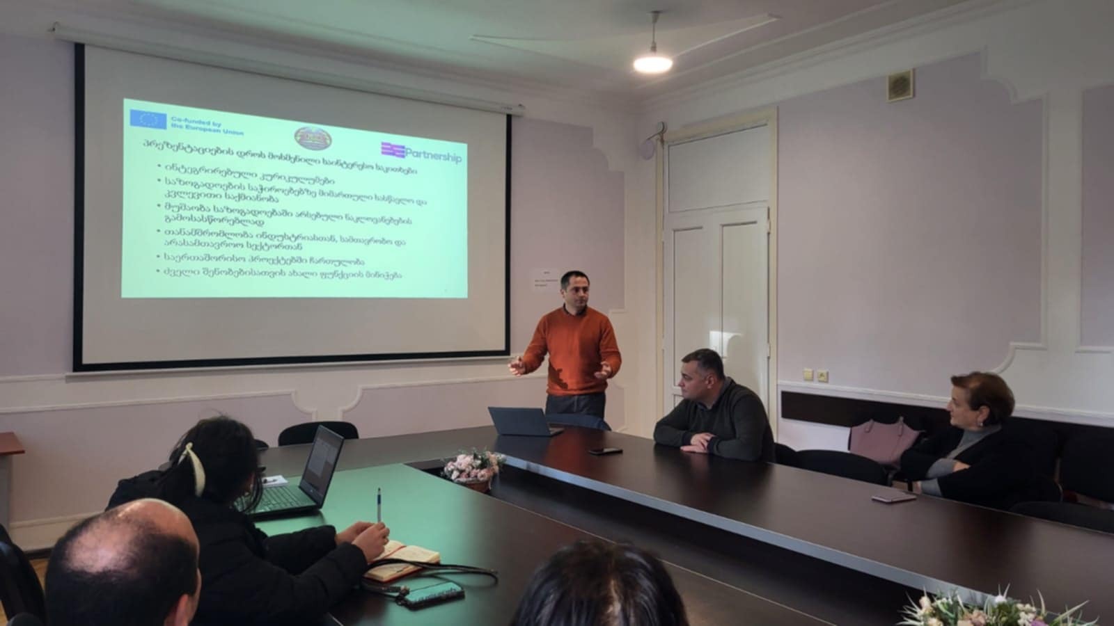 Project manager Maka Kochauri, dean of the Faculty of Agrarian, Natural Sciences and Technologies Levan Shavadze and project senior researcher Zurab Tsignadze presented a report on the activities carried out within the project framework to the representatives of the faculty administration.