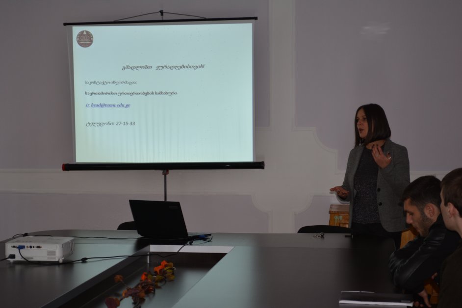 On October 21st, Iakob Gogebashvili Telavi State University International Relations Office arranged informational meeting on Erasmus+ exchange programmes for TeSaU students.