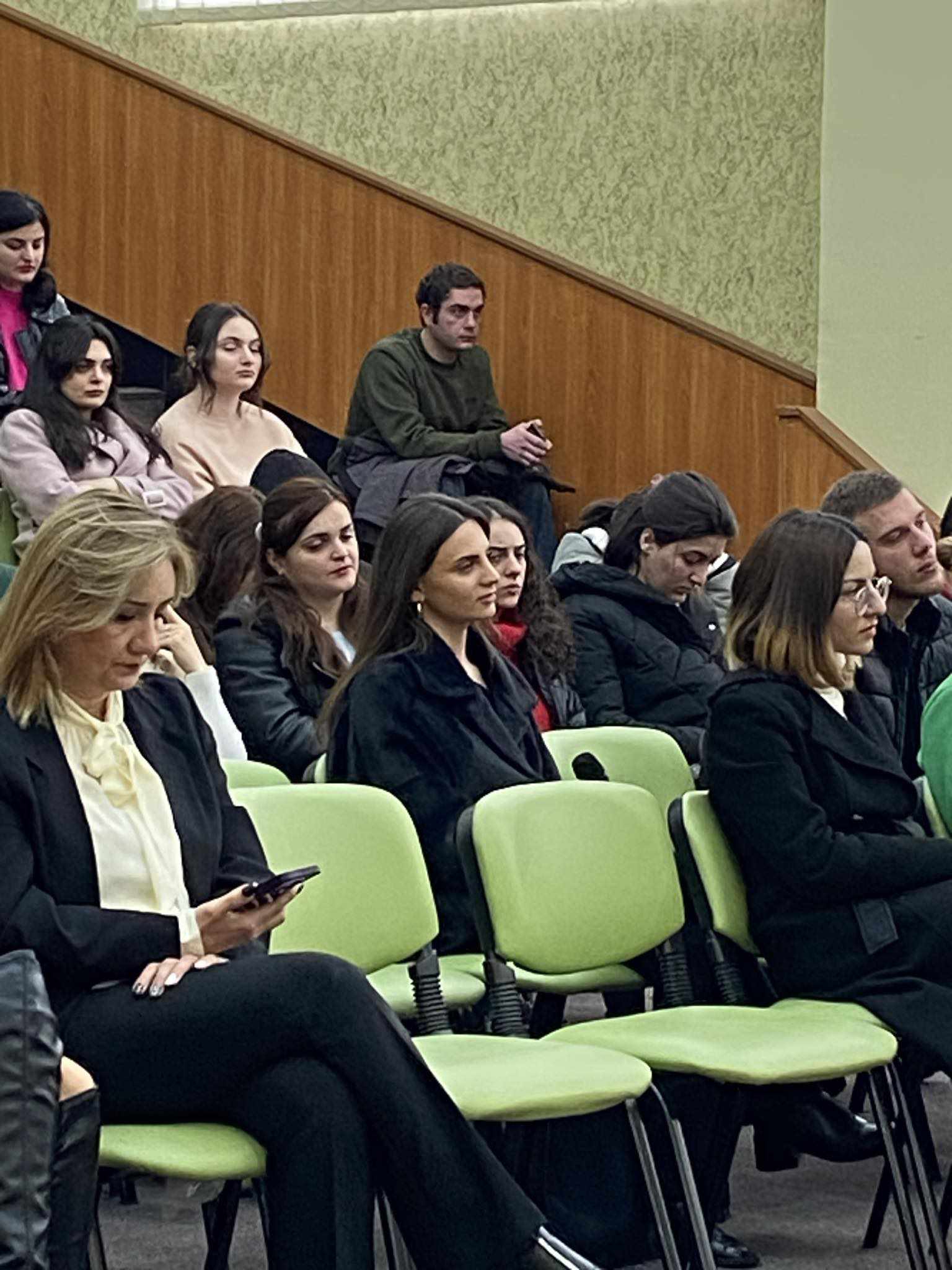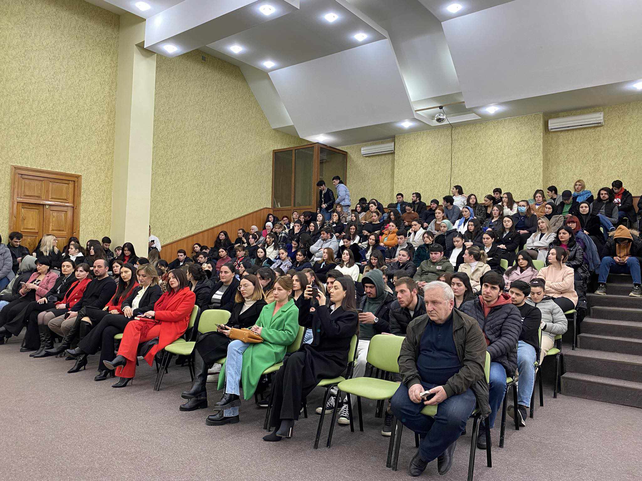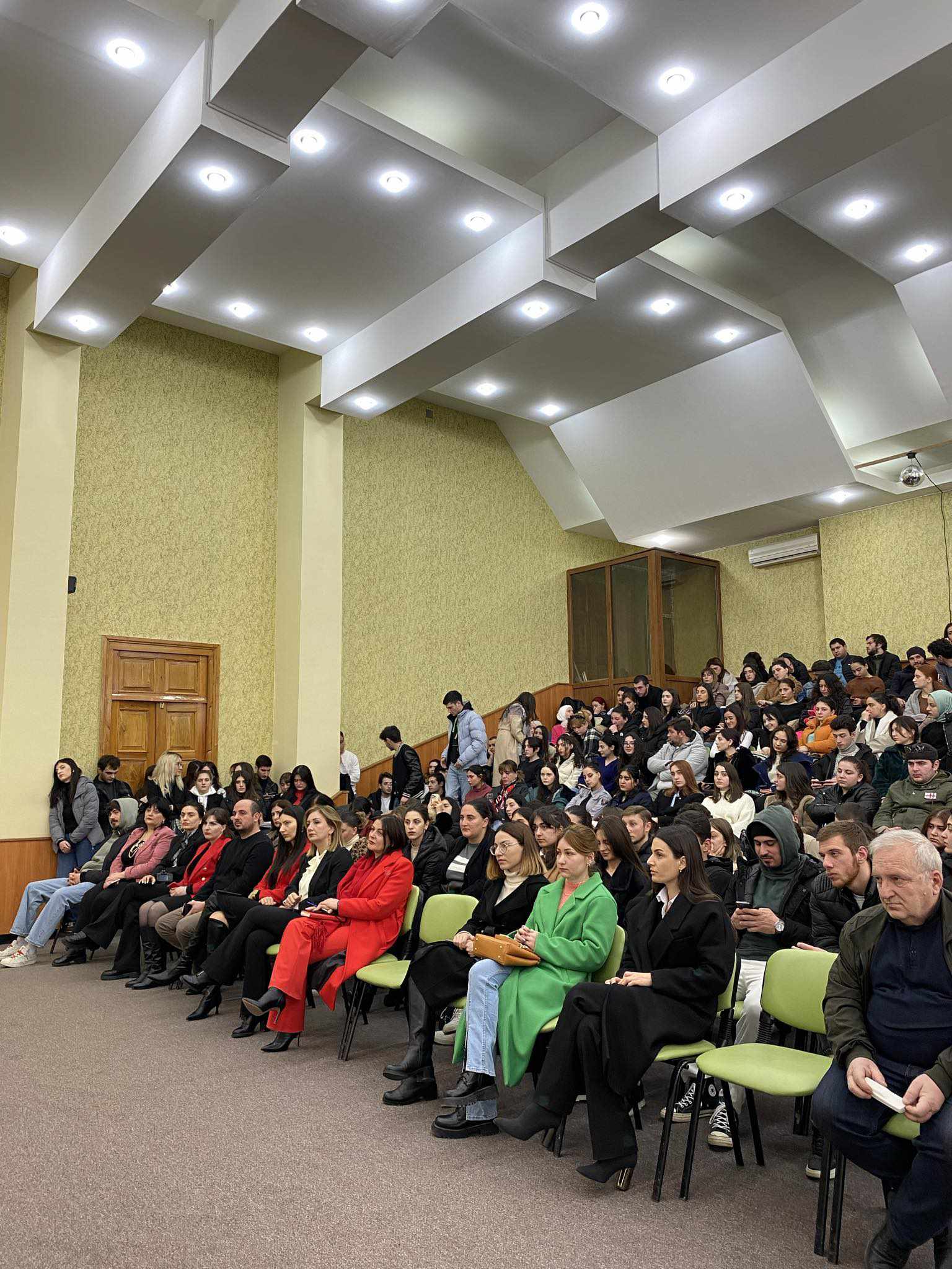 პარლამენტის ევროინტეგრაციის კომიტეტის თავმჯდომარე მაკა ბოჭორიშვილი და საპროცედურო კომიტეტის თავმჯდომარე ირაკლი ქადაგიშვილი სტუდენტებს უნივერსიტეტის რექტორმა, შალვა ჭკადუამ წარუდგინა და დეპუტატებს სტუმრობისათვის მადლობა გადაუხადა.