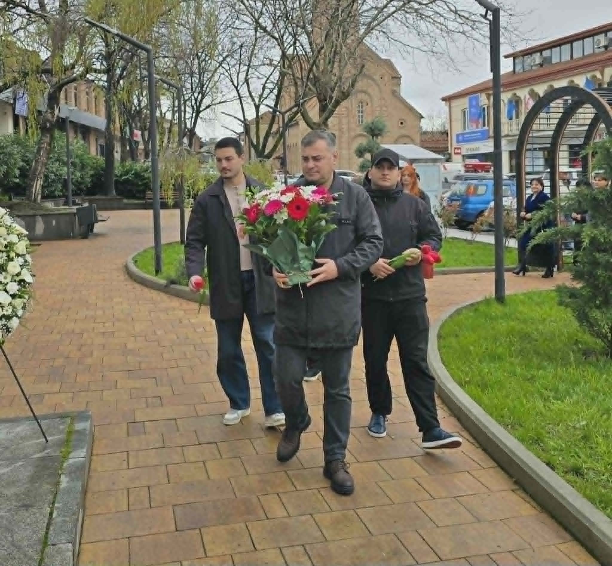 თელავში, 9აპრილის გმირთა მემორიალი უნივერსიტეტის წაომადგენლებმა ყვავილებით შეამკეს.